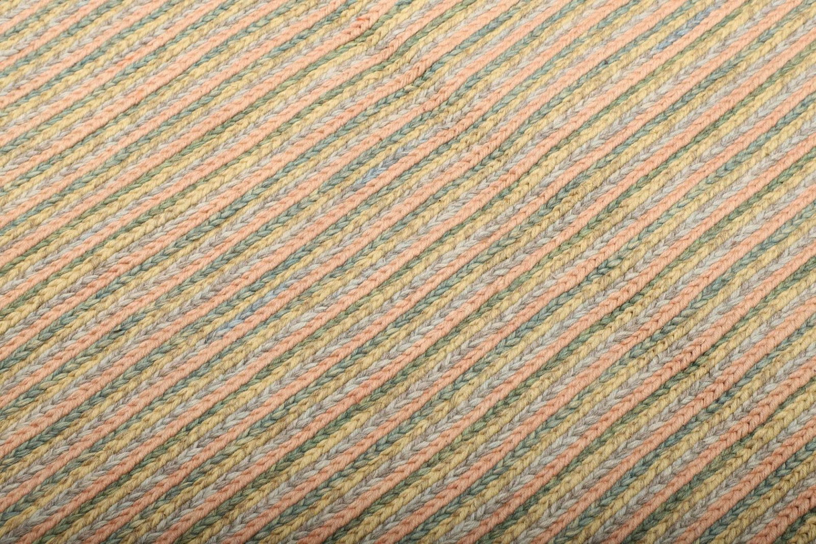 Kelim Teppiche sind bekannt für ihre flachen Webarten, die es ermöglichen, farbenfrohe Muster zu kreieren, die hier eine harmonische Symbiose aus Tradition und zeitgenössischem Design darstellen.
