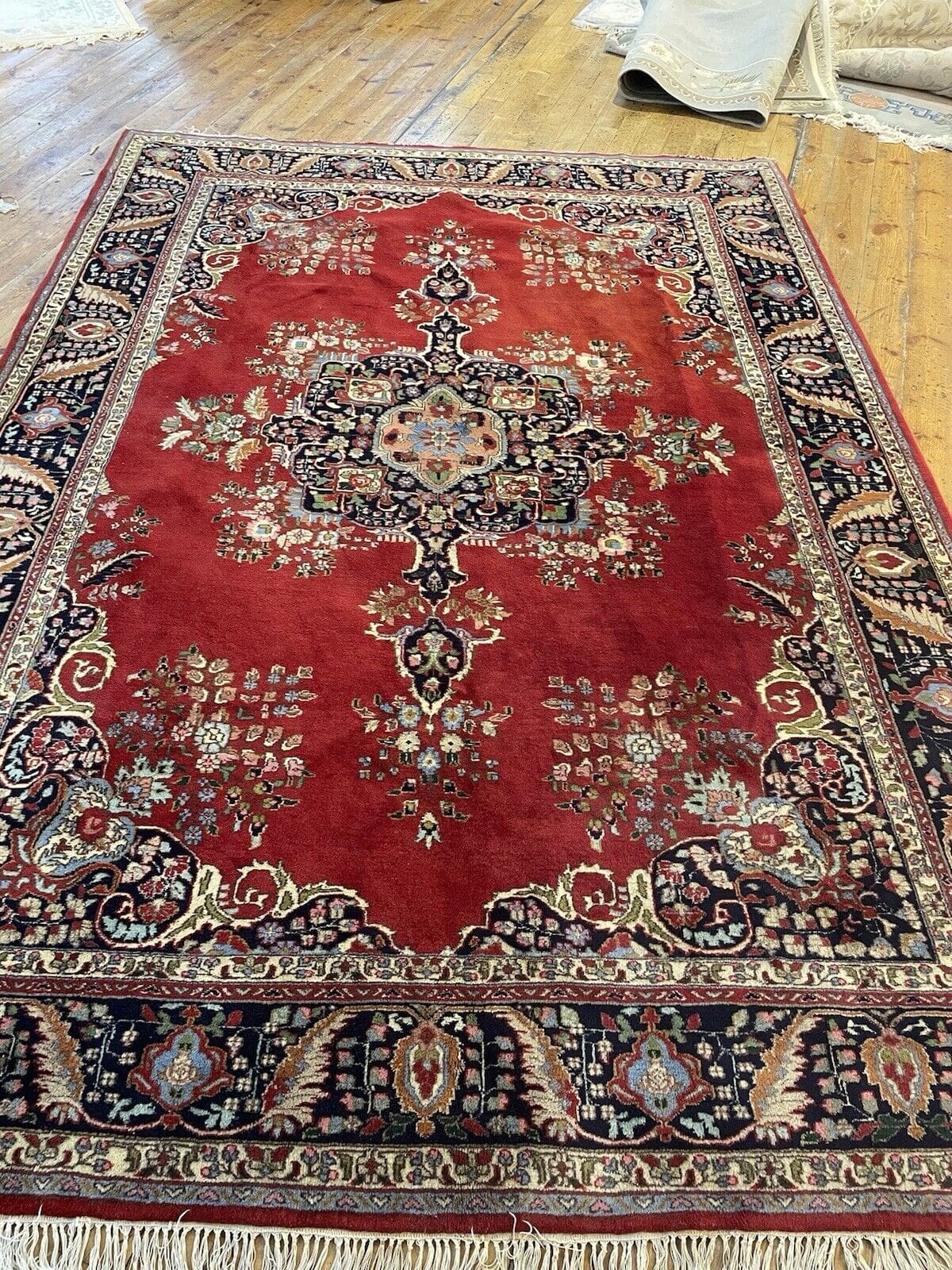 Mit einer Vielzahl von Größen erhältlich, passt dieser Teppich sowohl in große Wohnräume als auch in kleinere Zimmer. Der sehr gute Zustand des Teppichs garantiert Ihnen jahrelange Freude und Nutzung. Durch die sorgfältige Verarbeitung und die Auswahl der besten Materialien ist dieser Perserteppich nicht nur ein dekoratives Element, sondern auch eine wertvolle Investition.