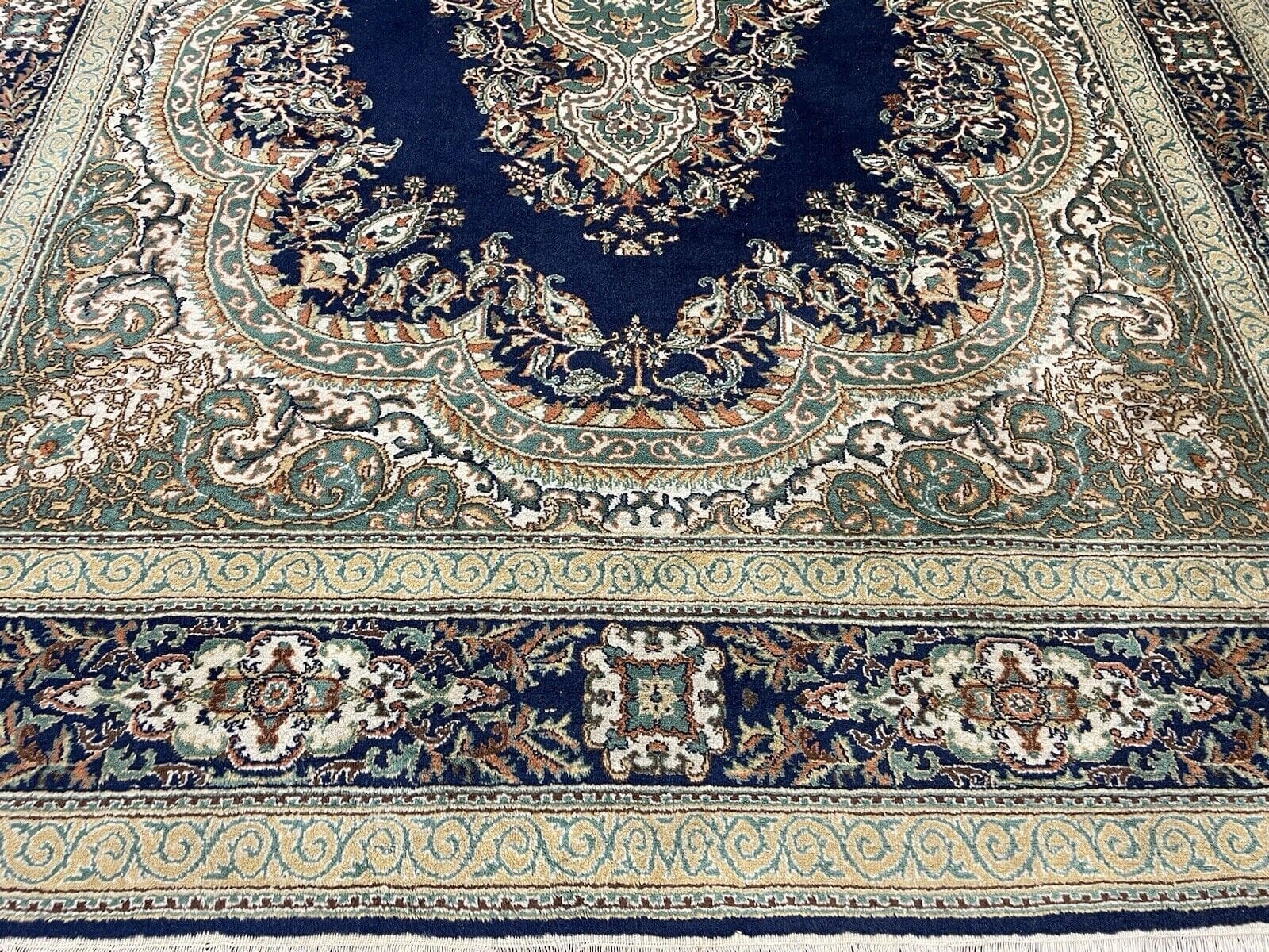 Dekorativer Kerman Perserteppich | Maße: 367 cm x 267 cm | Knotendichte: Hoch | Material: 100% reine Schurwolle | Zustand: Neu mit Etikett | Stil: Klassisch, Orientalisch | Florhöhe: Hochflor | Herstellungsart: Handgeknüpft | Farbe: Himmel Blau | Form: Rechteckig | Echte Orientteppich-Qualität
