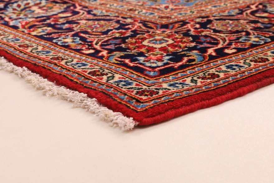 Handgeknüpfter KESHAN Teppich | Knotendichte: 200.000 – 250.000 Knoten/m² | Material: 100% Wolle | Größe: 324×209 cm | Ursprung: Iran / Persien | Zustand: Neuzeitlich (0-20 Jahre) | Florhöhe: ca. 14 mm | Gewicht: ca. 18 kg | Klassisches Medaillon-Muster umgeben von floralen Motiven