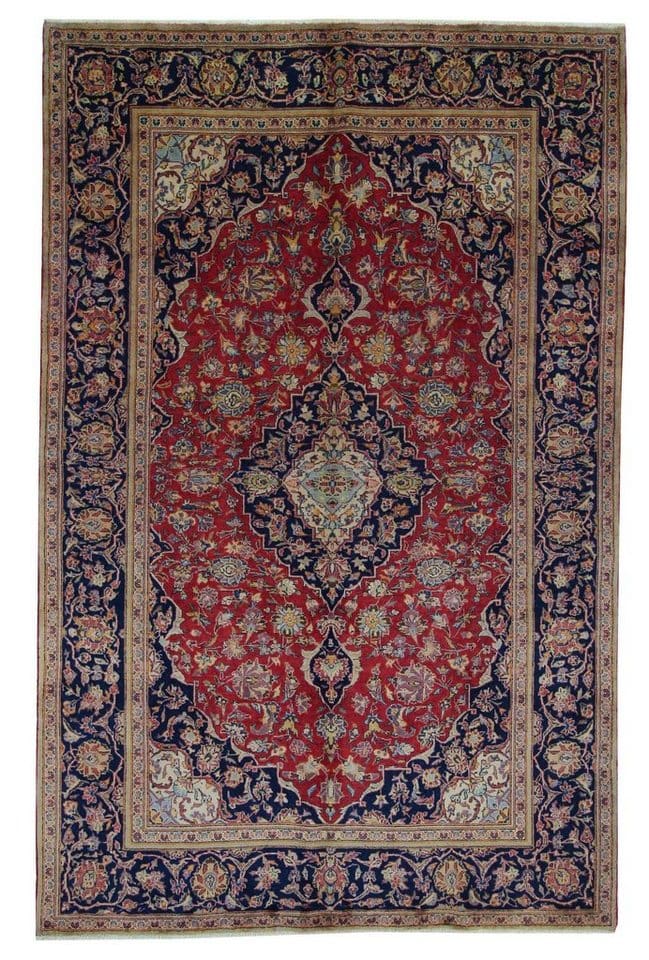 Handgeknüpfter Keshan-Teppich | Knotendichte: 150.000 – 300.000 Knoten/m² | Material: Hochwertige Wolle und Baumwolle | Größe: 296×189 cm | Farbe: Rot | Design: Orientalisch | Fußbodenheizungsgeeignet: Ja | Zustand: Unikat | Pflegehinweise: Regelmäßig absaugen, professionelle Reinigung empfohlen | Herkunft: Klassischer persischer Teppich | Hinweis: Geringe Abweichungen in Farbe und Größe möglich