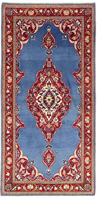 Handgeknüpfter Keshan-Teppich | Knotendichte: 200.000 – 250.000 Knoten/m² | Material: Handgesponnene Wolle und Baumwolle | Größe: 140×70 cm | Farbe: Blau/Türkis | Zustand: Neu | Ursprung: Iran/Persien