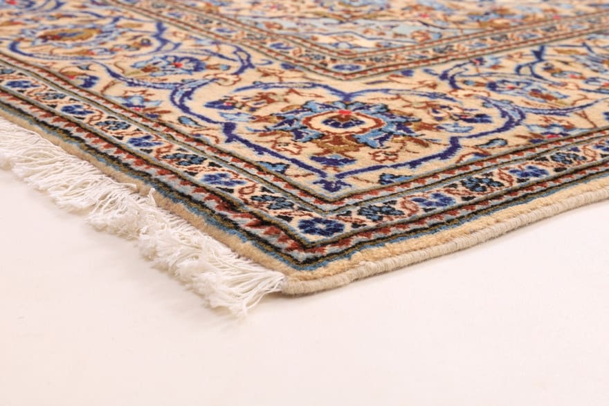 Handgeknüpfter KESHAN Teppich | Knotendichte: 200.000 – 250.000 Knoten/m² | Material: Wolle und Baumwolle | Größe: 308×196 cm | Herkunft: Iran/Persien | Alter: Neuzeitlich (0-20 Jahre) | Dicke: ca. 14 mm | Gewicht: ca. 18 kg | Klassisches Medaillon-Muster mit floralen Motiven
