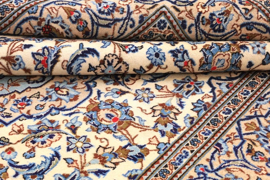 Der KESHAN Teppich besteht aus hochwertigen Materialien, die typisch sind für die erstklassigen Perserteppiche. Die Verwendung von 100% Wolle sorgt nicht nur für eine angenehme Haptik, sondern garantiert auch eine hohe Strapazierfähigkeit und Langlebigkeit. Die Wolle ist schmutzabweisend und besitzt natürliche, isolierende Eigenschaften, sodass der Teppich sowohl im Sommer als auch im Winter ein hohes Wohlfühlklima erzeugt. Die sorgfältige handgeknüpfte Technik, die für solche Teppiche verwendet wird, gewährleistet, dass jeder Teppich ein Unikat ist. Die Knotendichte, die für einen solchen Perserteppich spricht, sorgt zudem für die Detailverliebtheit, die in dem kunstvollen Muster zum Tragen kommt.