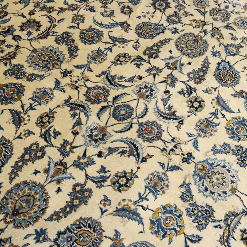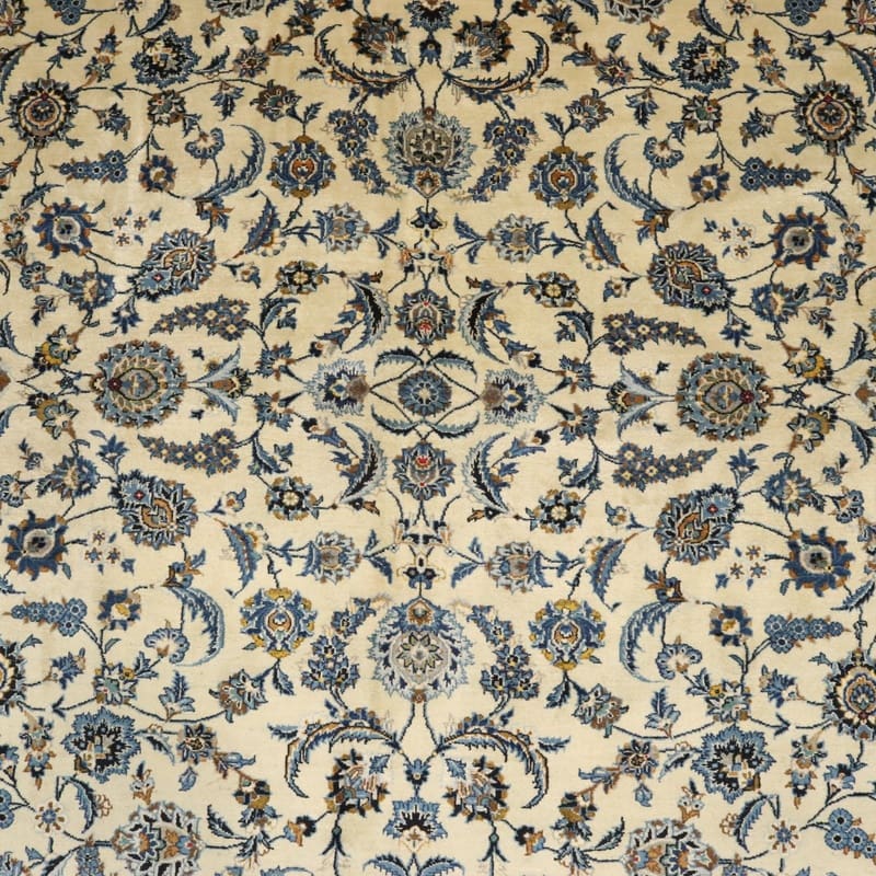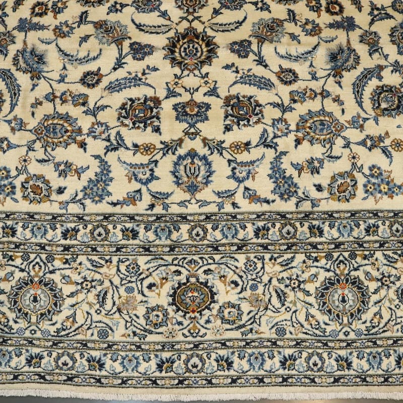 Keshan Teppich 418×298 cm, cremefarbig, Blumenmuster, handgeknüpft