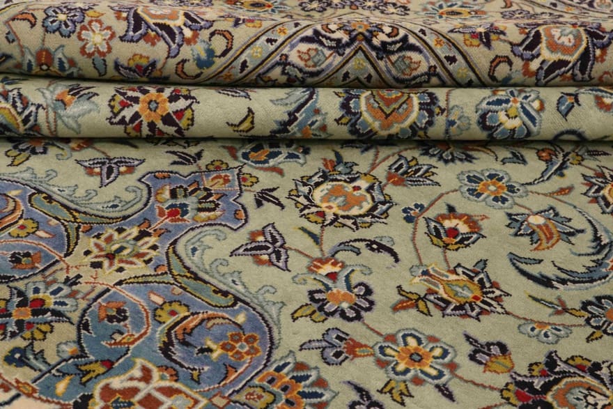 Keshan Teppiche zeichnen sich durch ihr charakteristisches Medaillon-Design und die floralen Muster aus. Im Vergleich zu anderen Perserteppichen sind sie oft in den leuchtenden Farben Isfahans gehalten und bieten eine besondere Detailtreue und Knotendichte.