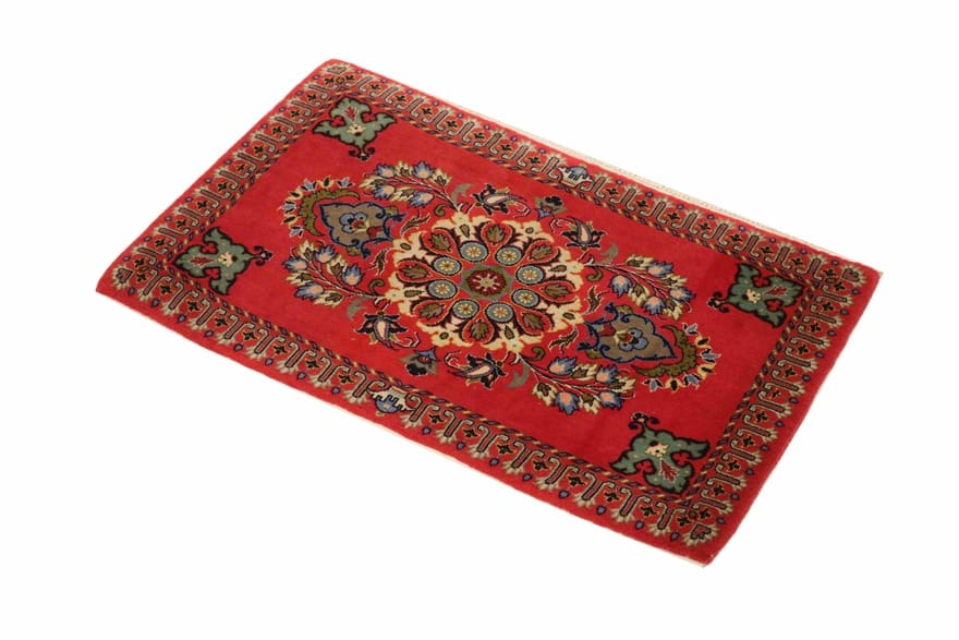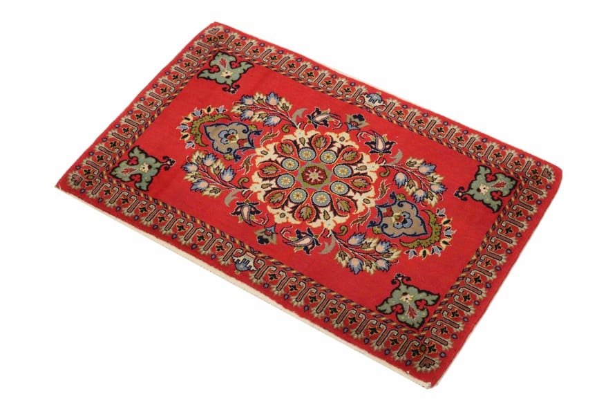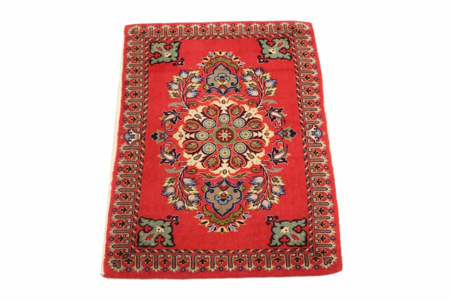 Handgeknüpfter Keshan-Teppich | Knotendichte: 200.000 – 250.000 Knoten/m² | Material: Handgesponnene Wolle und Baumwollkette | Größe: 97×61 cm | Farbe: Rot/Orange | In neuem Zustand | Ursprung: Iran/Persien