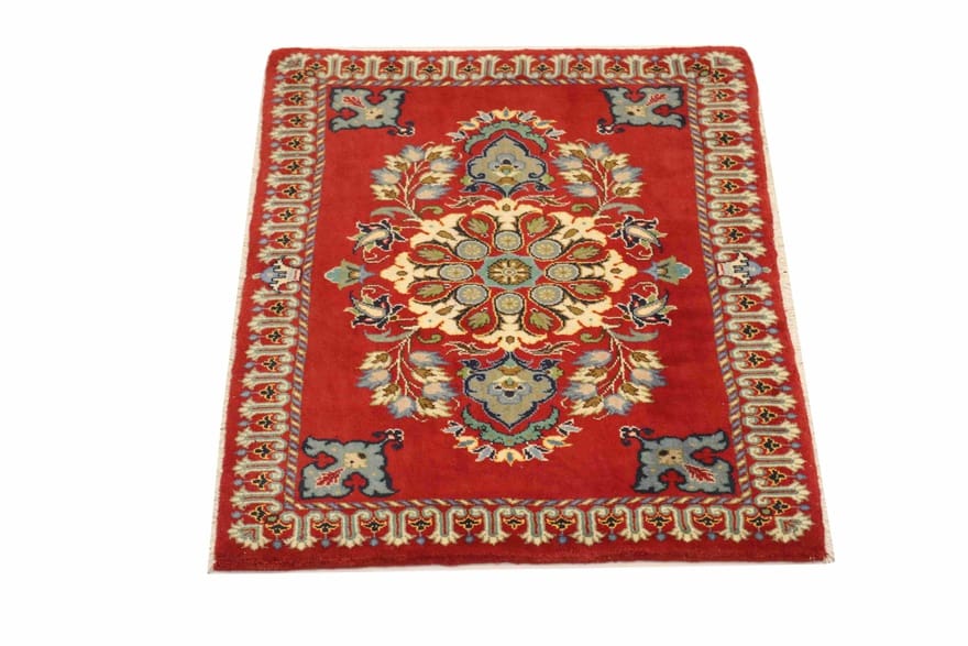 Handgeknüpfter Keshan Teppich | Knotendichte: 200.000 – 250.000 Knoten/m² | Material: Handgesponnene Wolle und Baumwolle | Größe: 97×65 cm | Farbe: Rot/Orange | In neuem Zustand | Ursprung: Iran / Persien