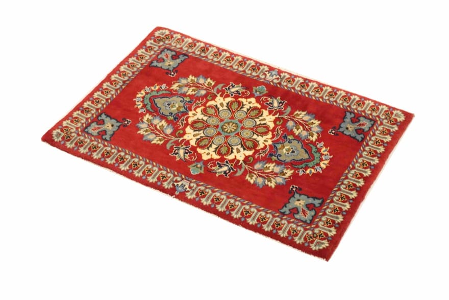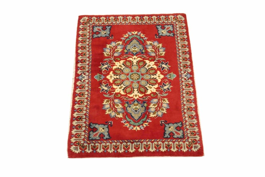 Keshan Teppich 97×65 cm, klassisches Medaillon, handgeknüpft, Perserteppich