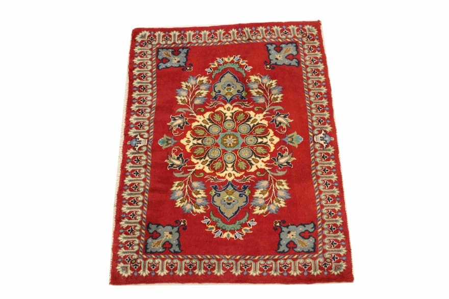 Keshan Teppich | Knotendichte: 200.000 – 250.000 Knoten/m² | Material: Handgesponnene Wolle und Baumwolle | Größe: 97×66 cm | Farbe: Rot/Orange | Alter: Neuzeitlich (0-20 Jahre) | Zustand: Neu | Ursprung: Iran / Persien | Dicke: ca. 10 mm | Gewicht: ca. 2 kg | Form: Rechteckig