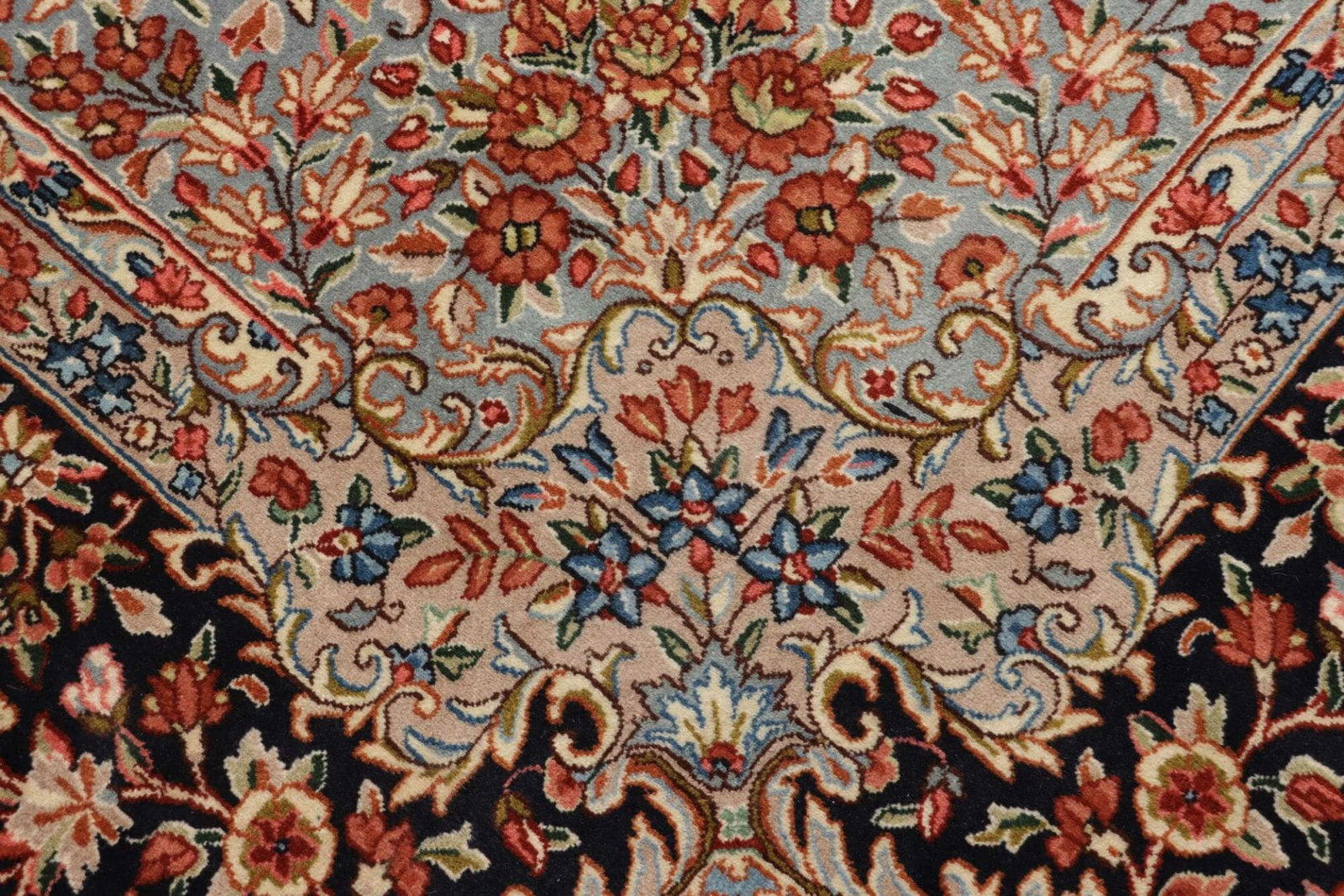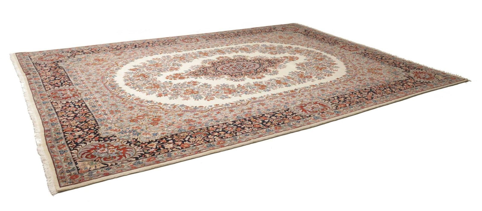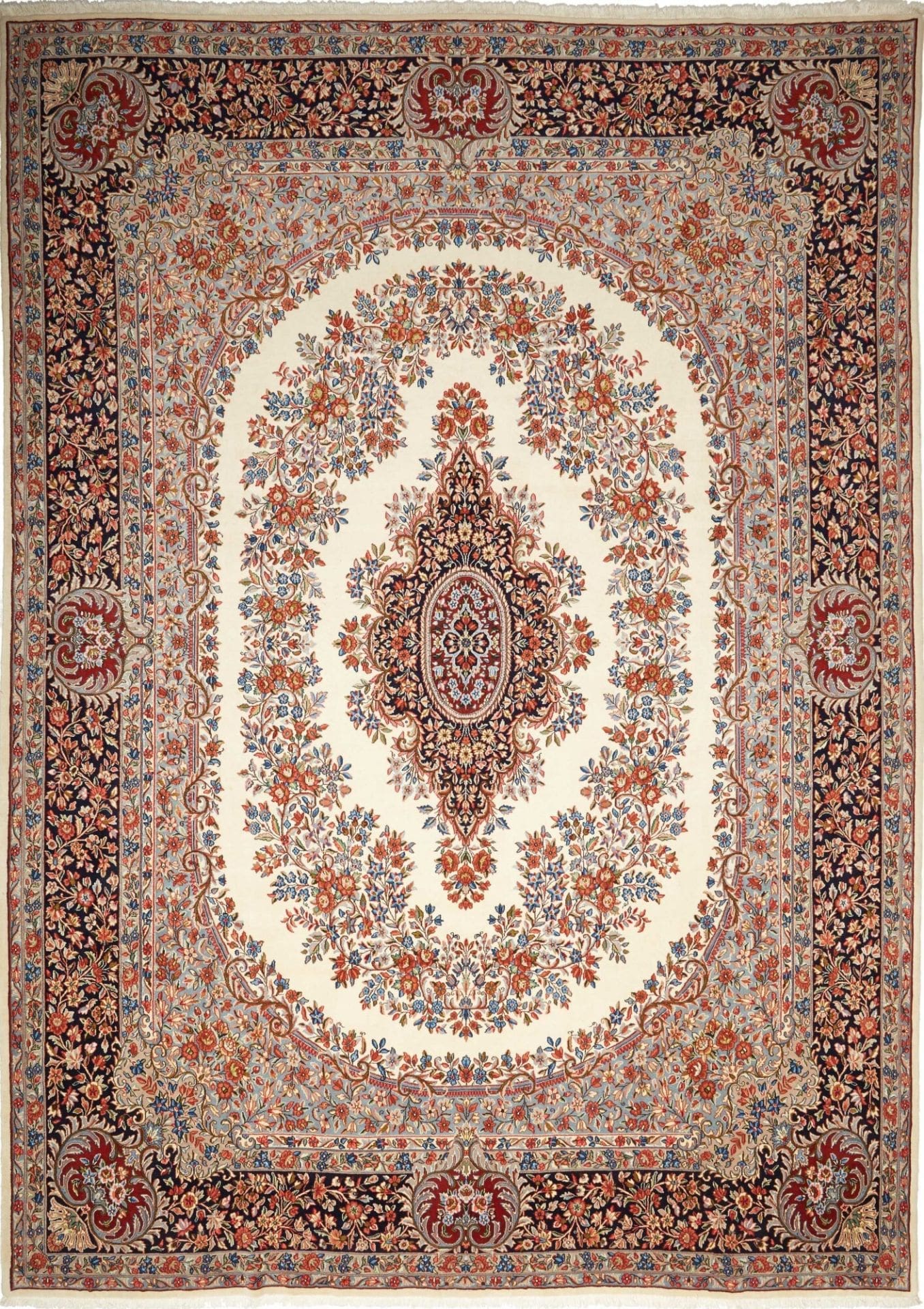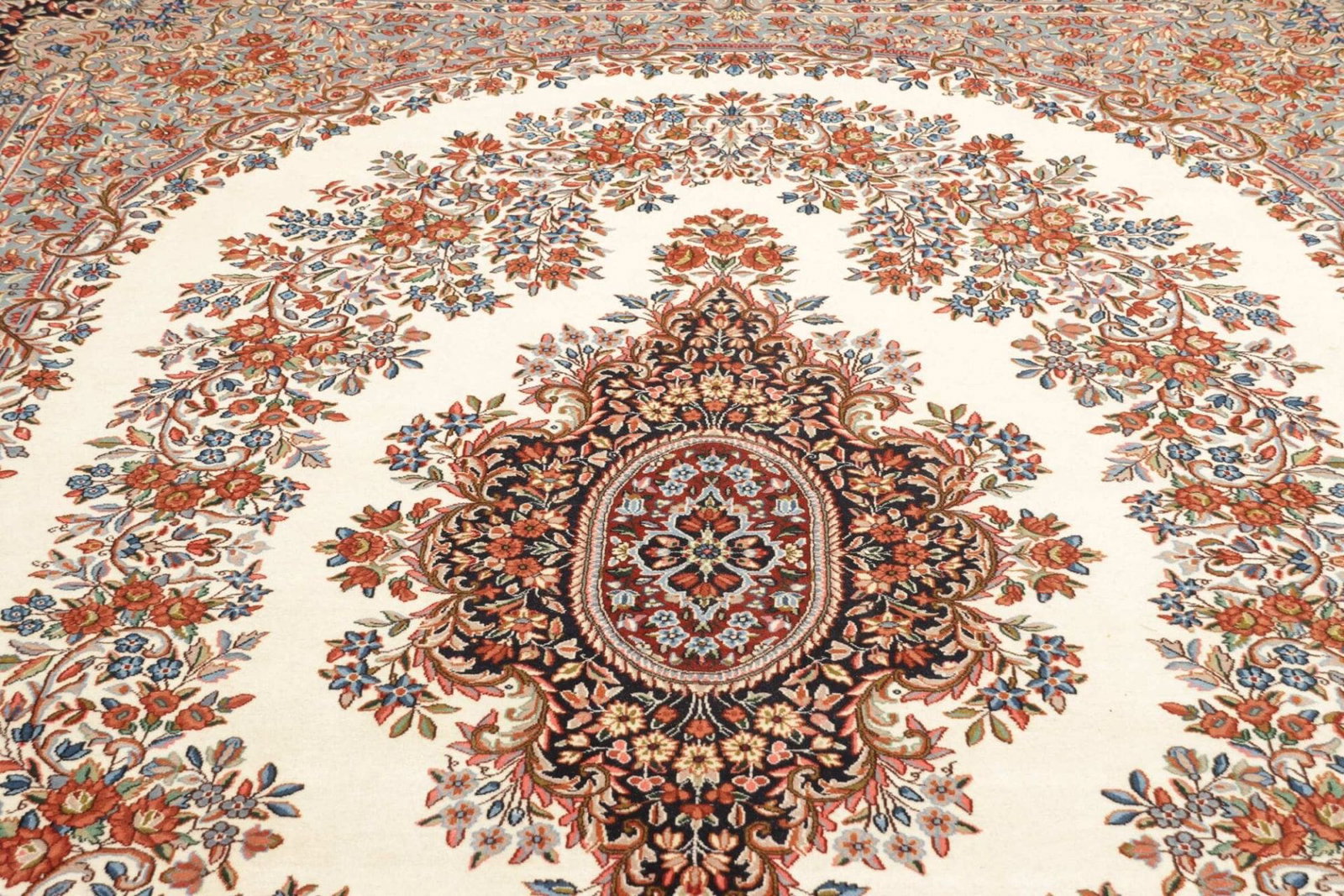 6857$Ursprünglicher Preis war: 6857$5813$Aktueller Preis ist: 5813$Handgeknüpfter Kirman Teppich | Knotendichte: ca. 400.000 Knoten/m² | Material: 100% Schurwolle | Kette: 100% Baumwolle | Größe: 294 x 403 cm | Herkunft: Iran | Zustand: Ausgezeichnet | Florale und geometrische Muster