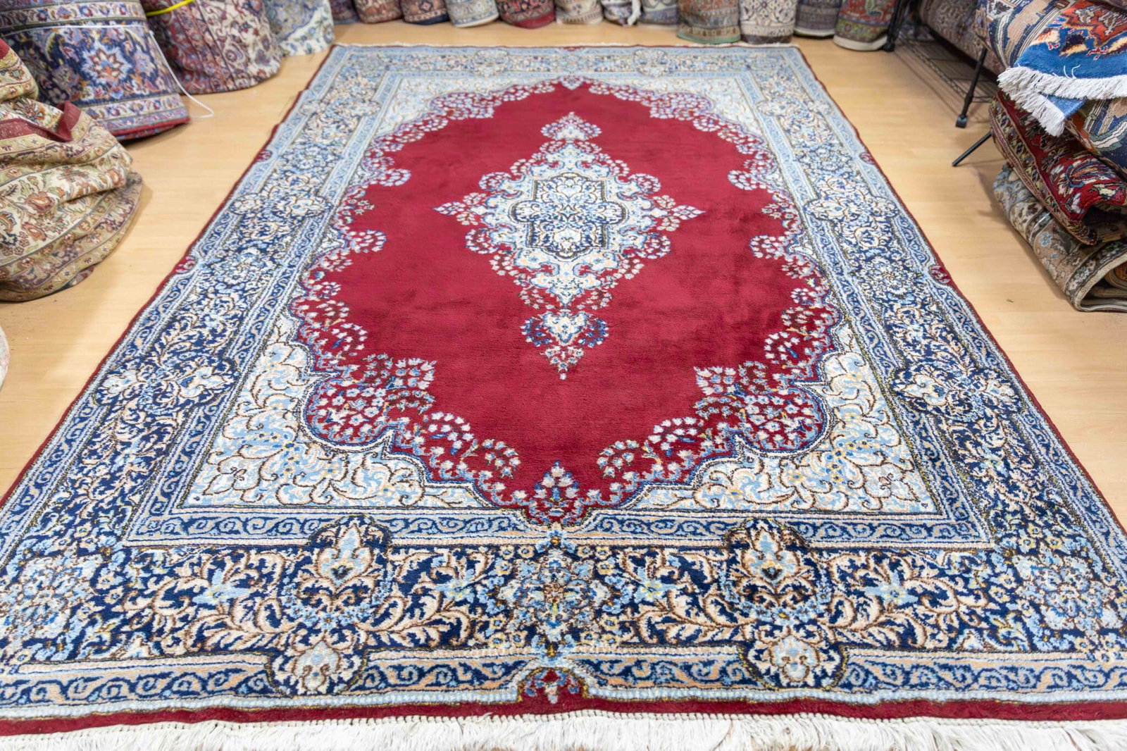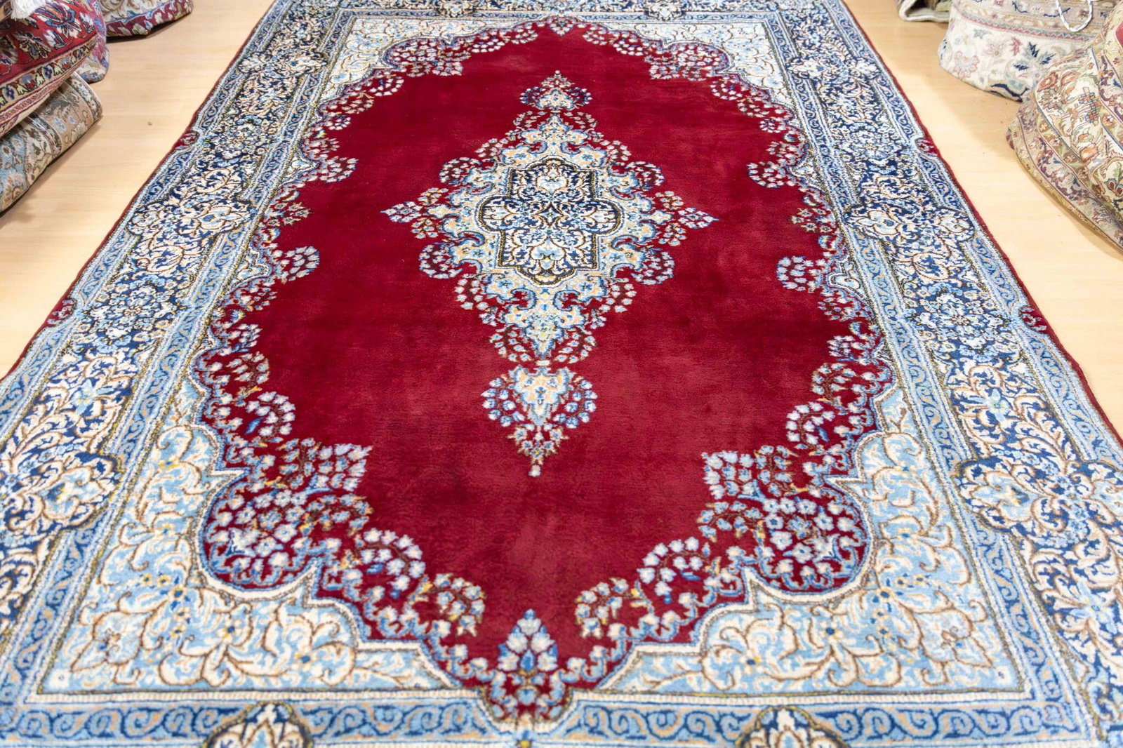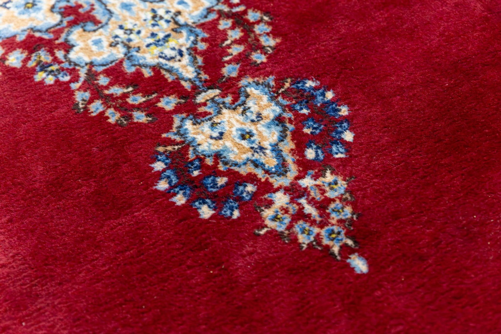 Dieses Exemplar stammt jedoch nachweislich aus dem Originalgebiet Kirman im Iran und ist vollständig handgeknüpft.