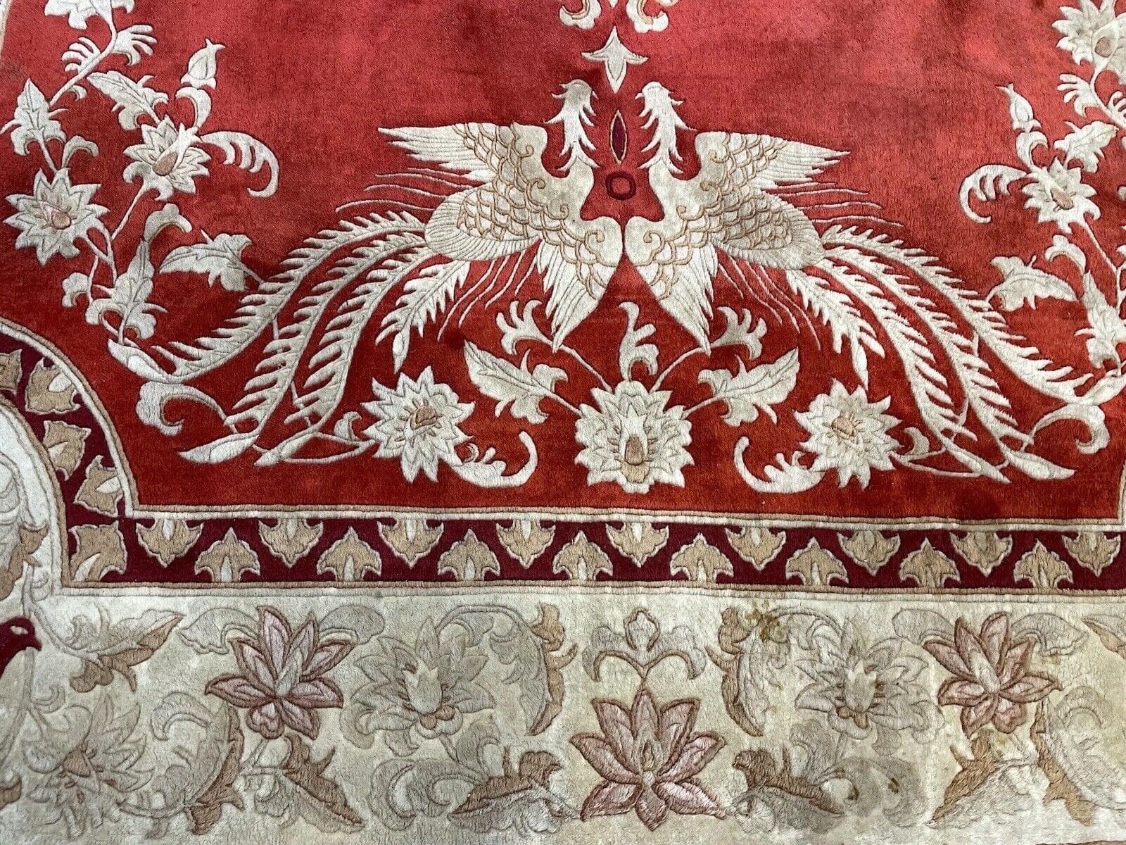 Darüber hinaus ist der Teppich in einem Zustand, der ihn ideal für den Einsatz in stark frequentierten Bereichen macht, während er gleichzeitig genügend Eleganz für formelle Räume bietet. Da alle Teppiche handgeknüpft sind, ist jeder einzelne ein Unikat, das die individuelle Handwerkskunst des Kunsthandwerkers widerspiegelt.