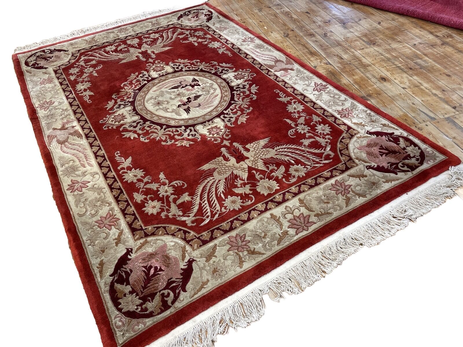 Handgeknüpfter Peking Teppich | Größe: 300×200 cm | Alter: 25-40 Jahre | Material: 100% reine Schurwolle | Florhöhe: 15 mm | Zustand: Gebraucht, gründlich geprüft und professionell gewaschen | Für Fußbodenheizung geeignet | Muster: Traditionell persisch/orientalisch | Herkunft: China | Kettfaden: Baumwolle | Form: Rechteckig