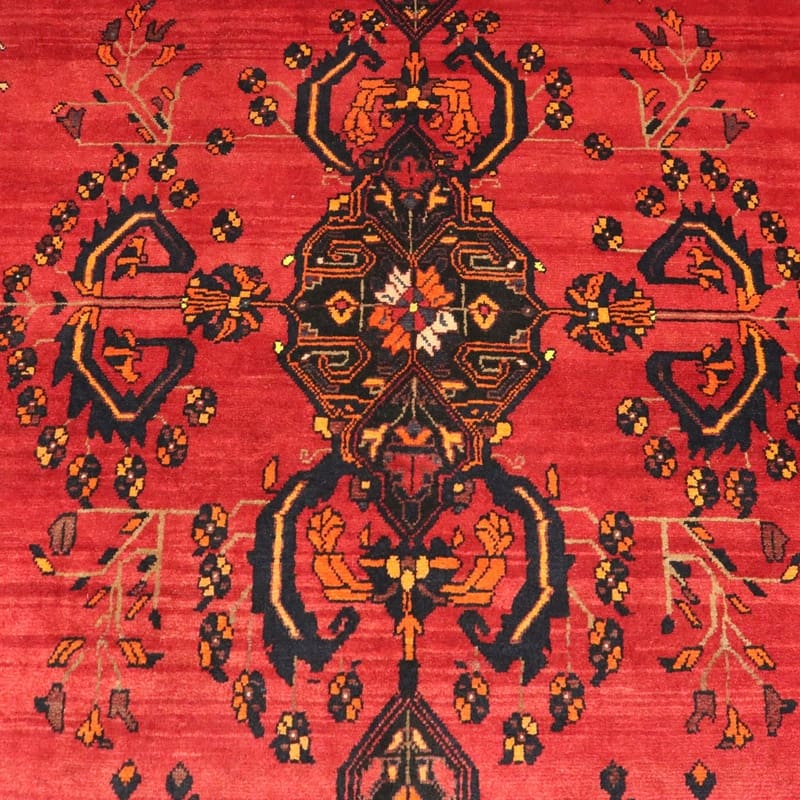 Handgeknüpfter Kurdi-Teppich | Knotendichte: 128.000-160.000 Knoten/m² | Material: 100 % Wolle | Größe: 364×226 cm | Herkunft: Kurdische Region, Persien | Zustand: Neuzeitlich (0-20 Jahre) | Farben: Rot/Orange | Verarbeitung: Handgeknüpft | Dicke: ca. 8 mm | Gewicht: ca. 22 kg