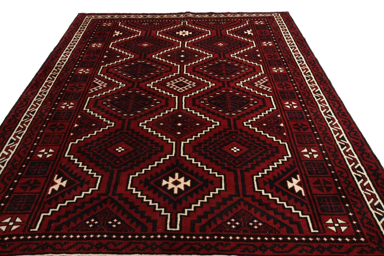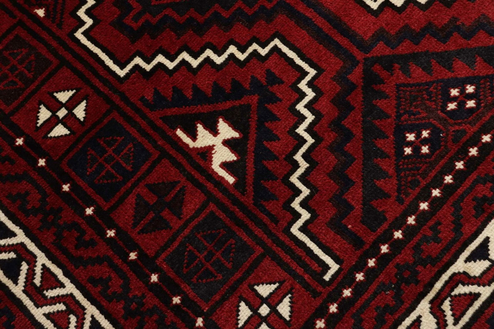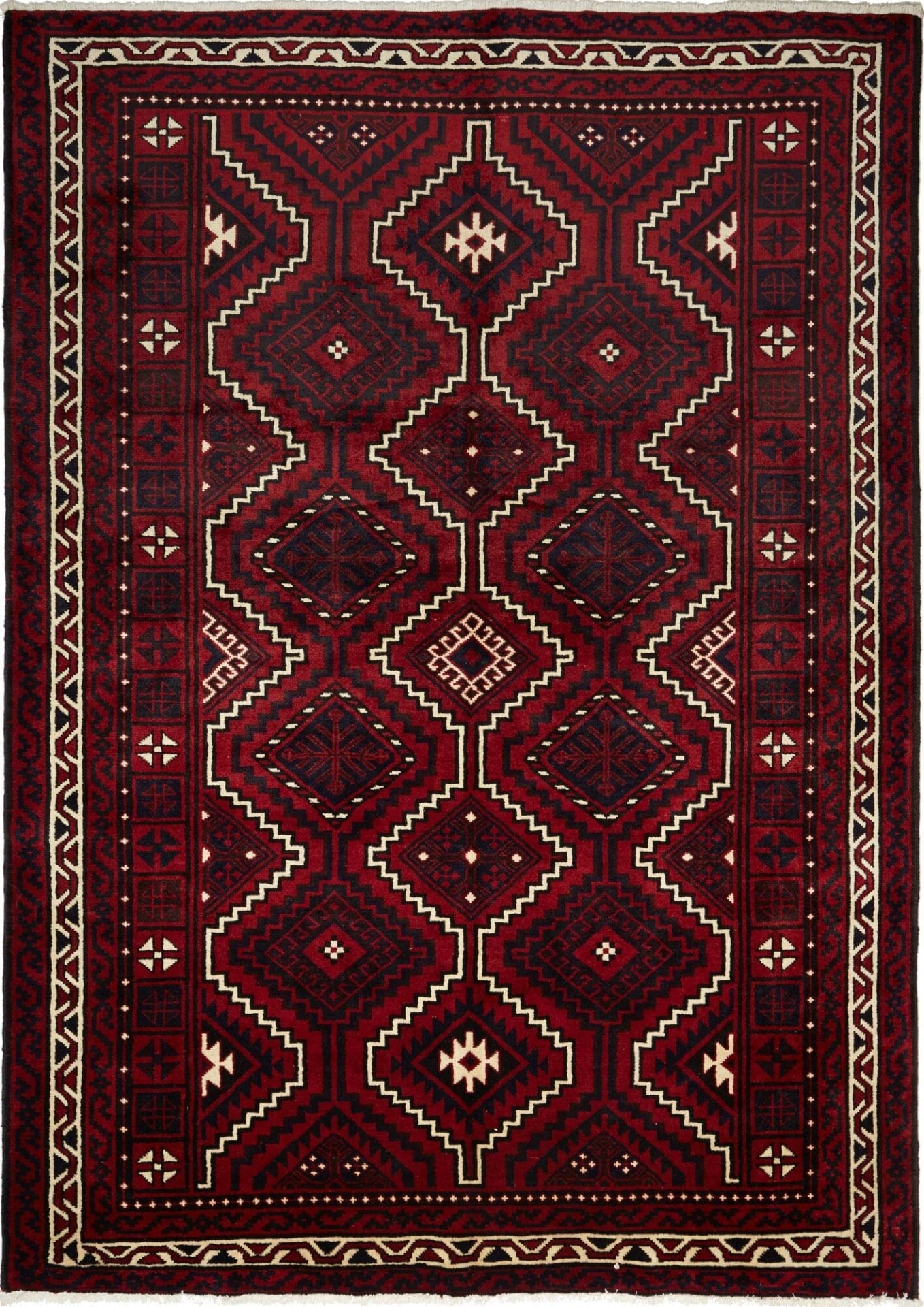 1888$Ursprünglicher Preis war: 1888$1655$Aktueller Preis ist: 1655$Lori Teppich | Knotendichte: ca. 200.000 Knoten/m² | Material: 100% Schurwolle | Größe: 225 x 302 cm | Ursprung: Iran | Zustand: Handgeknüpft | Muster: Geometrisch in dunklen Blau- und Rottönen | Höhe: 10-12 mm