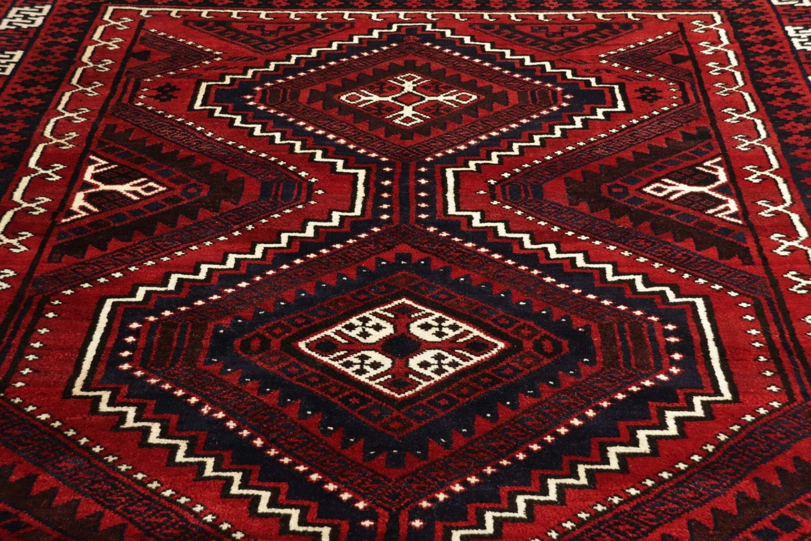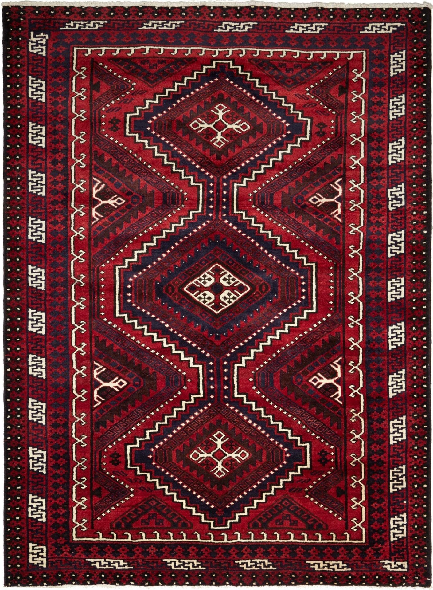 1626$Ursprünglicher Preis war: 1626$1458$Aktueller Preis ist: 1458$Lori Teppich | Knotendichte: ca. 200.000 Knoten/m² | Material: 100% Schurwolle | Größe: 228 x 305 cm | Verarbeitung: Handgeknüpft | Ursprung: Iran | Muster: Geometrisch in dunklen Blau- und Rottönen | Höhe: ca. 10-12 mm | Zustand: Sehr gut