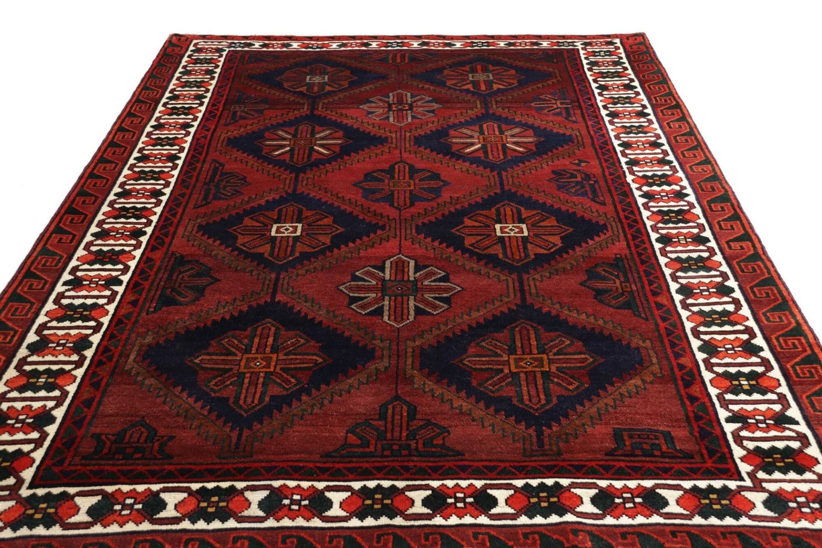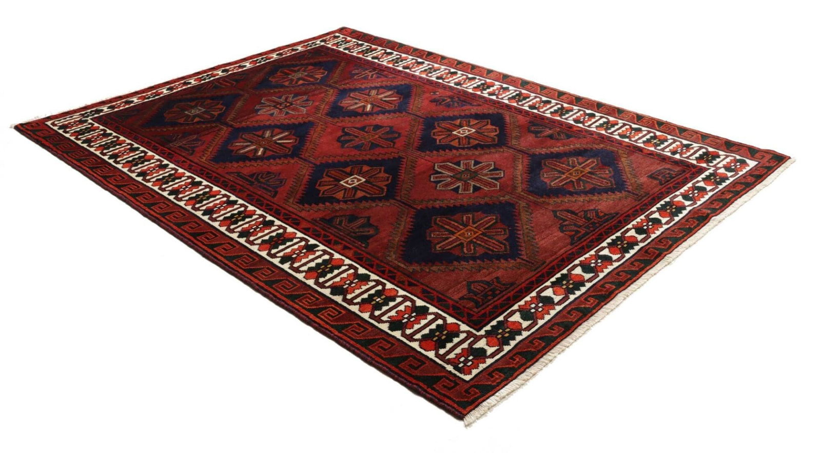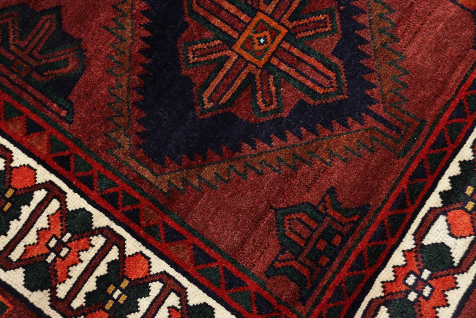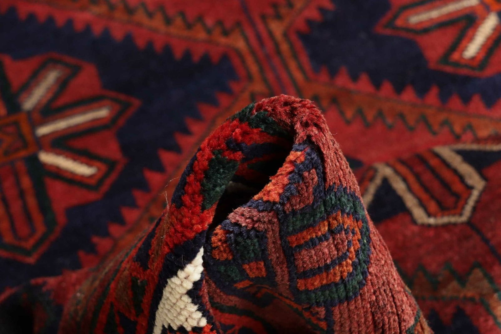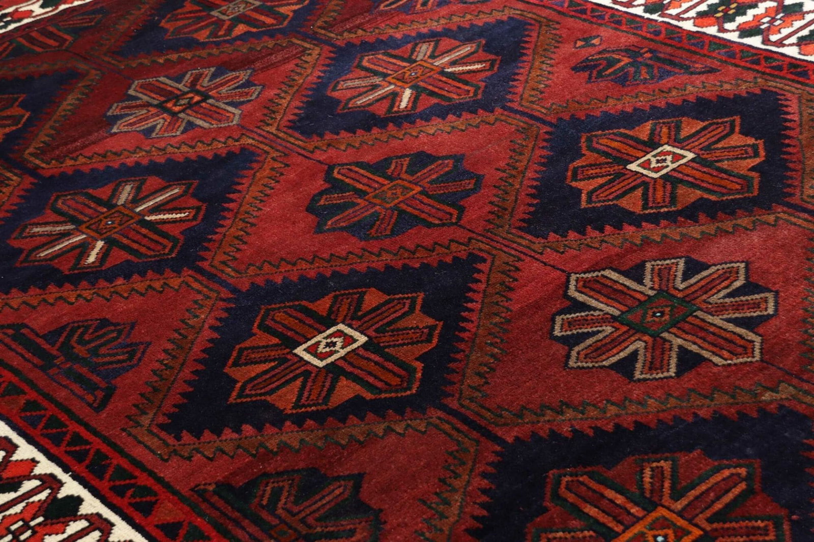 1313$Ursprünglicher Preis war: 1313$1155$Aktueller Preis ist: 1155$Lori Teppich | Knotendichte: 200.000 Knoten/m² | Muster: Geometrisch in dunklen Blau- und Rottönen | Größe: 203×270 cm | Material: 100% Schurwolle (Flor), 100% Baumwolle (Kette) | Höhe: 10-12 mm | Verarbeitung: Handgeknüpft | Herkunft: Iran | Zustand: Sehr gut erhalten