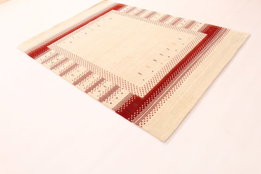 LORIBAF Teppich | Knotendichte: 128.000 – 160.000 Knoten/m² | Material: Hochwertige Wolle und Baumwolle | Größe: 203×161 cm | Farbe: Weiß/Beige | Zustand: Neu | Ursprung: Indien | Verarbeitung: Handgeknüpft | Dicke: ca. 10 mm | Gewicht: ca. 10 kg