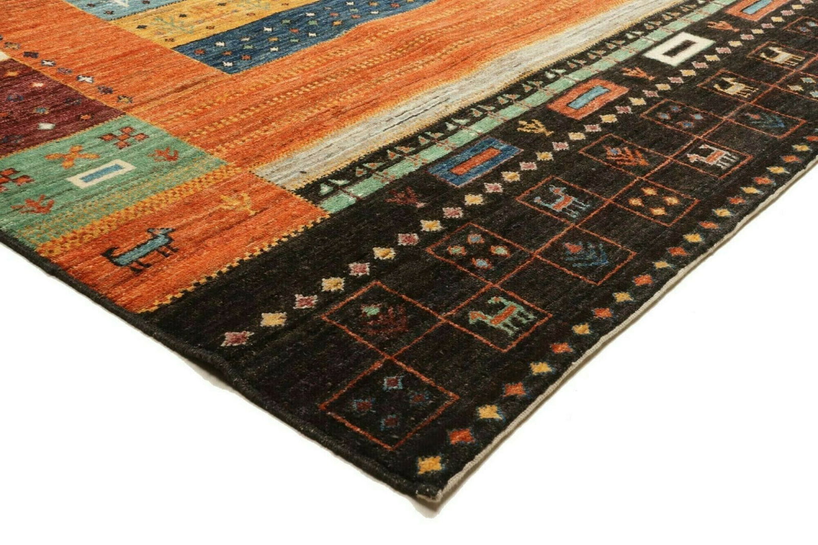 4378$ In den WarenkorbGabbeh-Loribaft Teppich 230 x 200 cm – 150.000 – 220.000 Knoten/m² – Abstraktes Design mit Tier- und Pflanzenmotiven – Handgeknüpft, Perserteppich