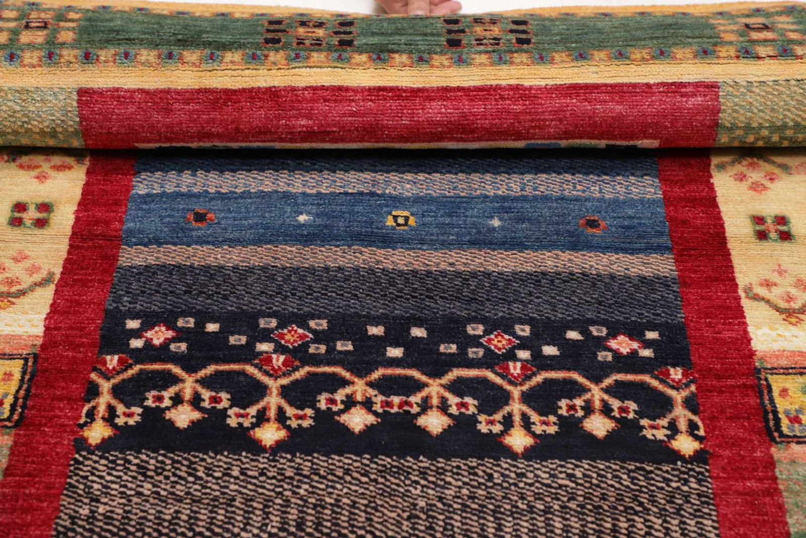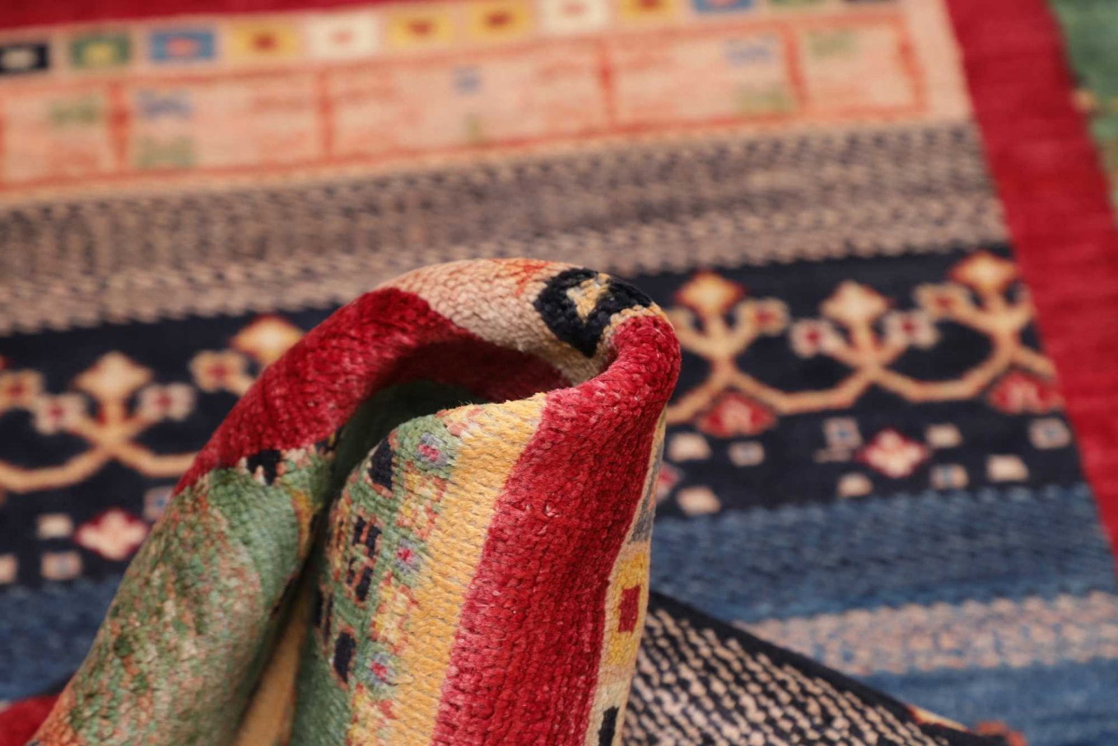 Mit einer sorgfältigen Knotendichte bietet dieser Teppich eine detailreiche und dauerhafte Oberfläche. Diese Technik bedeutet, dass jeder Knoten von Hand gefertigt wird, was nicht nur zur Robustheit des Teppichs beiträgt, sondern auch eine Vielzahl von komplizierten Mustern und Designs ermöglicht. Der handgeknüpfte Ansatz ist der Schlüssel zu der einzigartigen Qualität und dem unnachahmlichen Charme, den Loribaft-Teppiche auszeichnen.