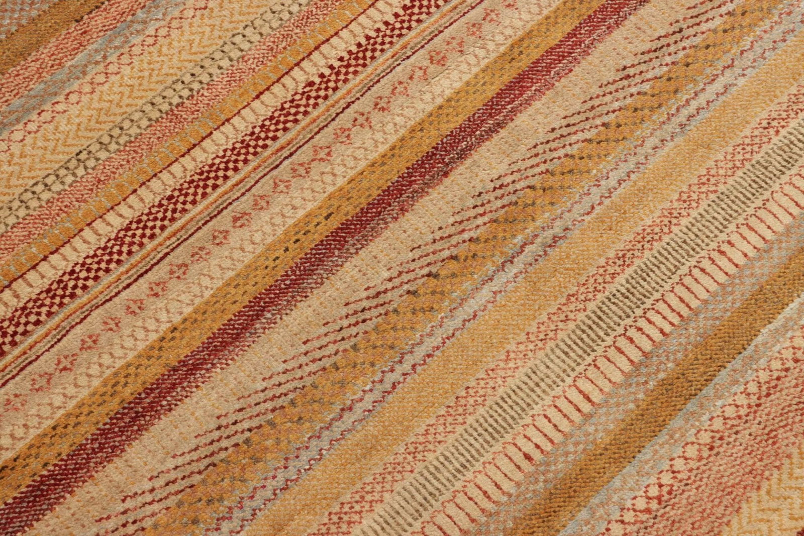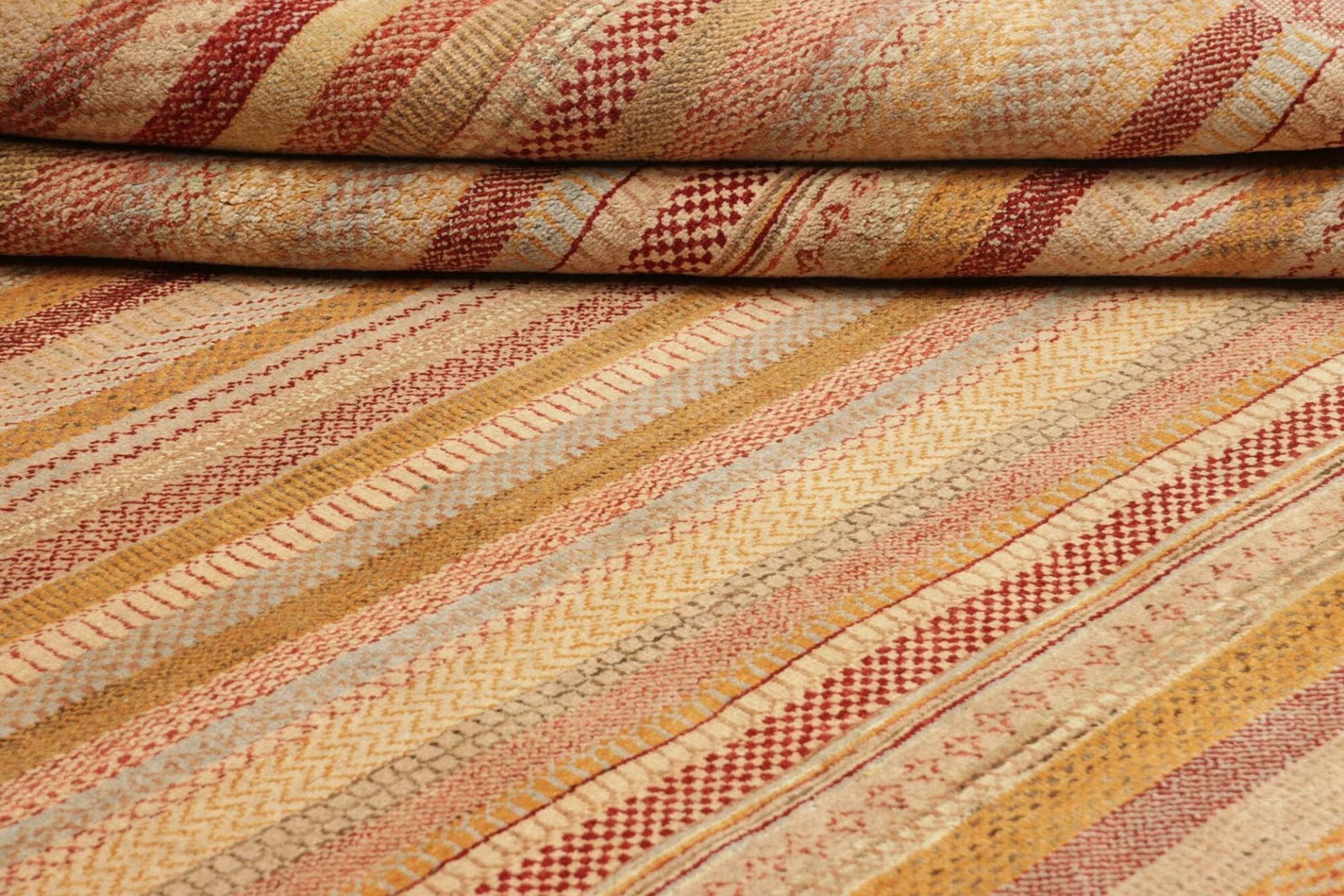 Die Verwendung von Schurwolle macht diesen Teppich besonders weich und angenehm im Gefühl. Schurwolle hat nicht nur eine natürliche Fähigkeit zur Feuchtigkeitsregulierung, sondern ist zudem sehr robust und langlebig. Die handgeknüpfte Technik sorgt dafür, dass jeder Teppich ein Unikat ist und mit viel Liebe zum Detail hergestellt wird. Bei der Knotendichte dieses Modells spiegelt sich die hohe Qualität und die umfassende Fertigungstradition wider. Teppiche dieser Art sind häufig Jahrzehnte, wenn nicht sogar Jahrhunderte, haltbar und verlieren auch mit der Zeit nicht ihren Charme.