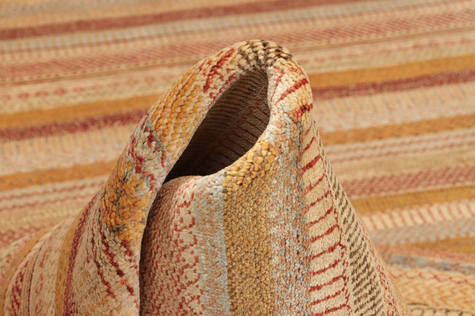 Der Loribaft Teppich ist nicht nur ein praktisches Element Ihrer Raumgestaltung, sondern auch ein hervorragendes Stück Geschichte und Handwerkskunst, das Emotion und Identität vermittelt. Schurwolle sorgt dafür, dass der Teppich auch unter hohem Fußverkehr widerstandsfähig bleibt. Außerdem hat der Teppich durch sein handgeknüpftes Design einen unverwechselbaren Charakter, der maschinell hergestellten Teppichen oft fehlt. Die Pflege ist ebenfalls unkompliziert – regelmäßiges Staubsaugen reicht meist aus, um die Schönheit des Teppichs über Jahre hinweg zu erhalten.