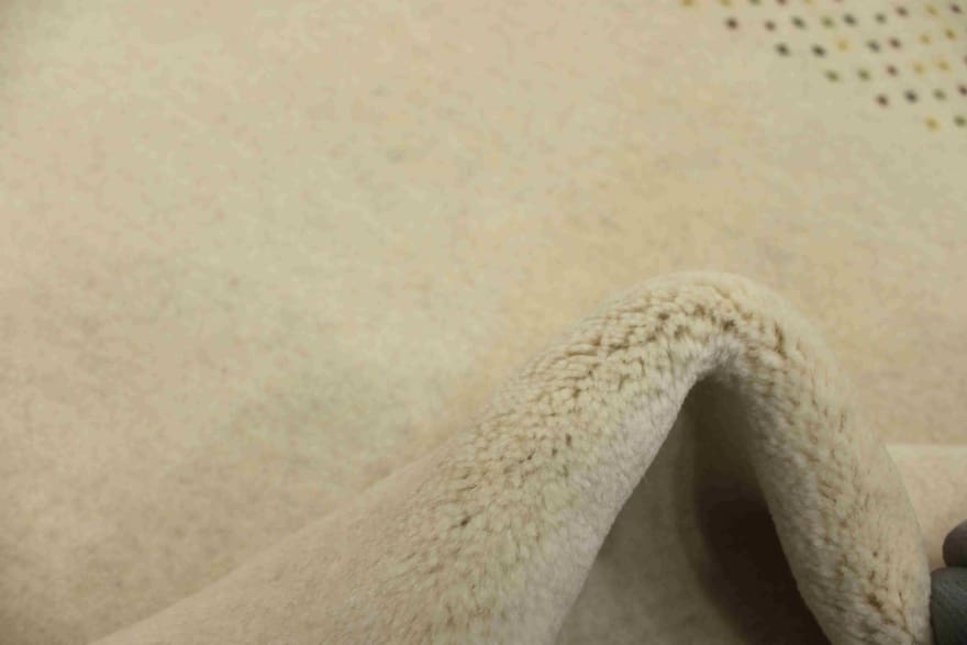 Loribaft Teppich | Knotendichte: 160.000 – 200.000 Knoten/m² | Material: Wolle und Baumwolle | Größe: 242×171 cm | Handgeknüpft | Herkunft: Indien | Farbe: Weiß/Beige | Zustand: Neu | Dicke: ca. 10 mm | Gewicht: ca. 12 kg