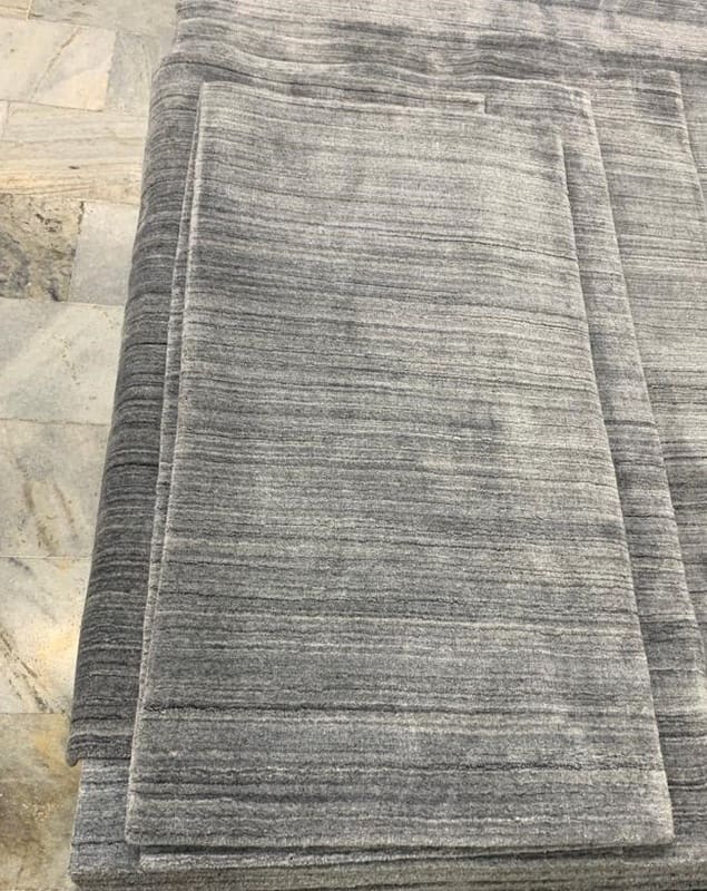 Loribaf Teppich | Knotendichte: sehr fein und dicht | Material: Wolle/Viskose | Größe: 184×123 cm | Farbe: Schwarz/Grau | Zustand: Neu | Herkunft: Indien | Verarbeitung: Loom Handgeknüpft | Dicke: ca. 8 mm | Gewicht: ca. 8 kg