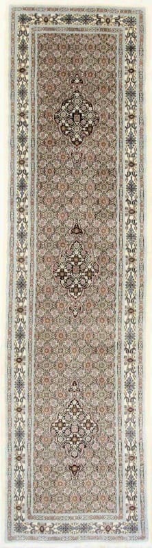 Handgewebter Moud-Teppich | Knotendichte: 320.000 – 360.000 Knoten/m² | Material: Wolle, Seide, Baumwolle | Größe: 295×81 cm | Zustand: Neu | Muster: Herati | Herkunft: Iran / Persien | Dicke: ca. 10 mm | Gewicht: ca. 6 kg