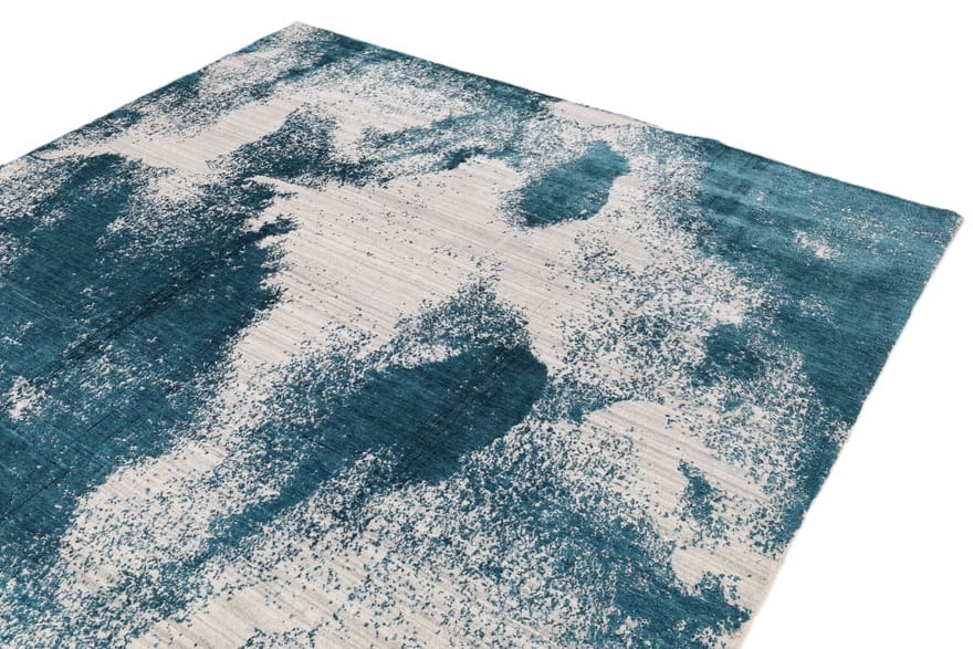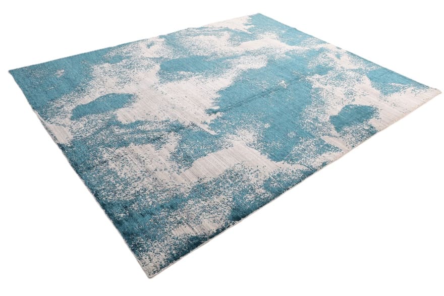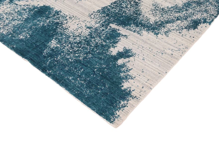 Luxuriöser handgewebter Orientteppich | Knotendichte: 128.000 – 160.000 Knoten/m² | Material: Wolle und Bambusseide auf Baumwollfaden | Größe: 304×245 cm | Farbe: Blau/Türkis | Zustand: Neu | Herkunft: Indien | Dicke: ca. 10 mm | Gewicht: ca. 18 kg