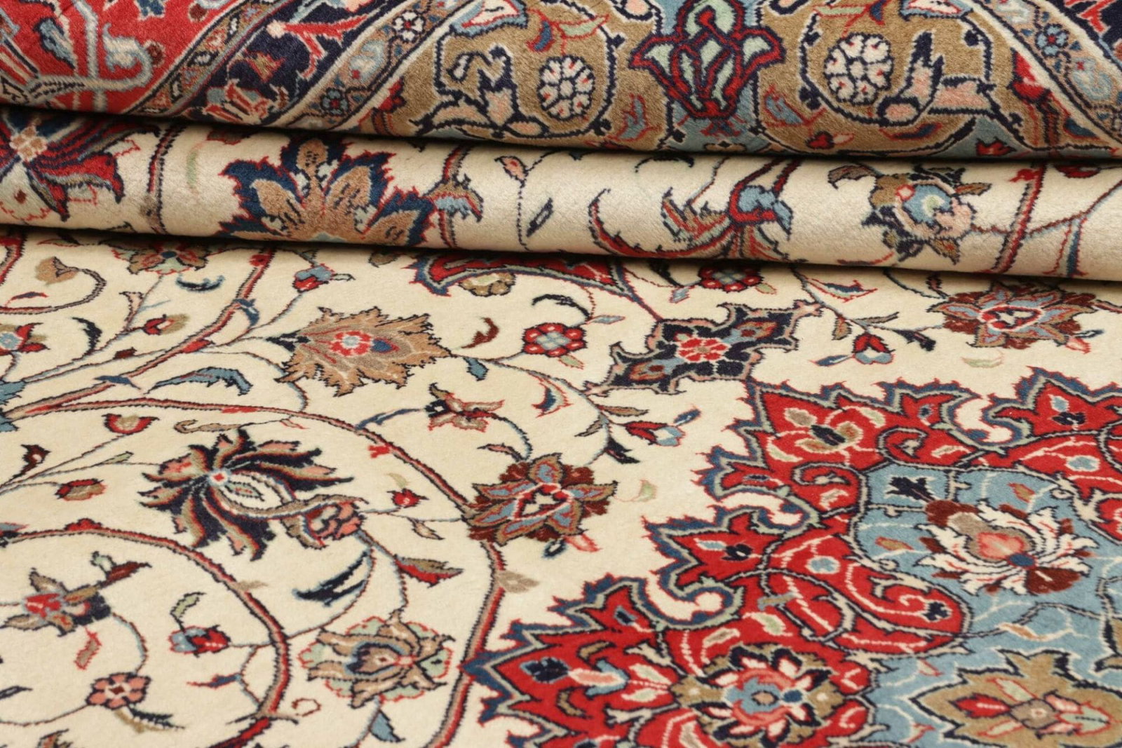Der Mahal Teppich ist ein herausragendes Beispiel für die exquisite Handwerkskunst und die traditionsreichen Teppichknüpftechniken des Iran. Dieser handgeknüpfte Perserteppich zeichnet sich durch seine hochwertige Verarbeitung aus Schurwolle aus, die nicht nur für ihre Langlebigkeit bekannt ist, sondern auch für ihren luxuriösen Glanz und die angenehme Haptik.