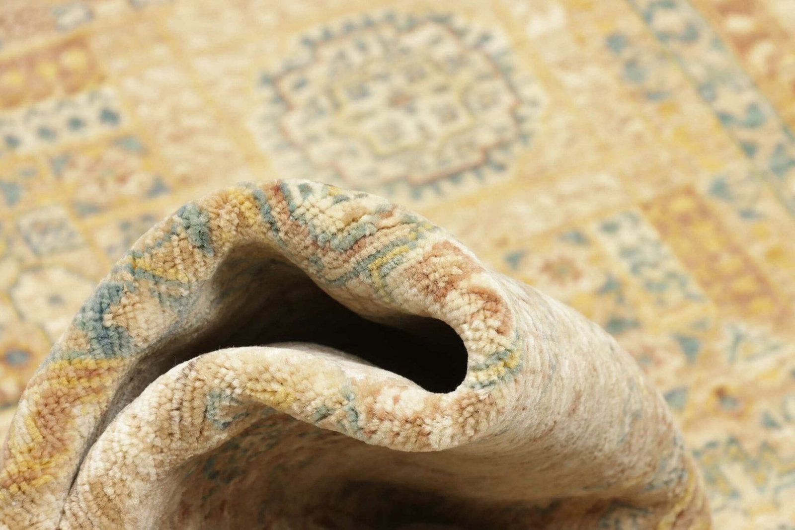 Der Teppich ist handgeknüpft und bringt die traditionelle Kunstfertigkeit, die für orientalische Teppiche typisch ist, perfekt zur Geltung. Handgeknüpfte Teppiche sind bekannt für ihre hohe Knotendichte, die nicht nur zur Langlebigkeit, sondern auch zur Detailgenauigkeit der Muster beiträgt. Diese Art der Herstellung erfordert Geschick und Erfahrung, die über Generationen hinweg weitergegeben wurden. Schurwolle als Hauptmaterial sorgt zudem für eine angenehme Haptik und eine schöne Farbintensität, die durch die natürliche Färbung noch unterstrichen wird.