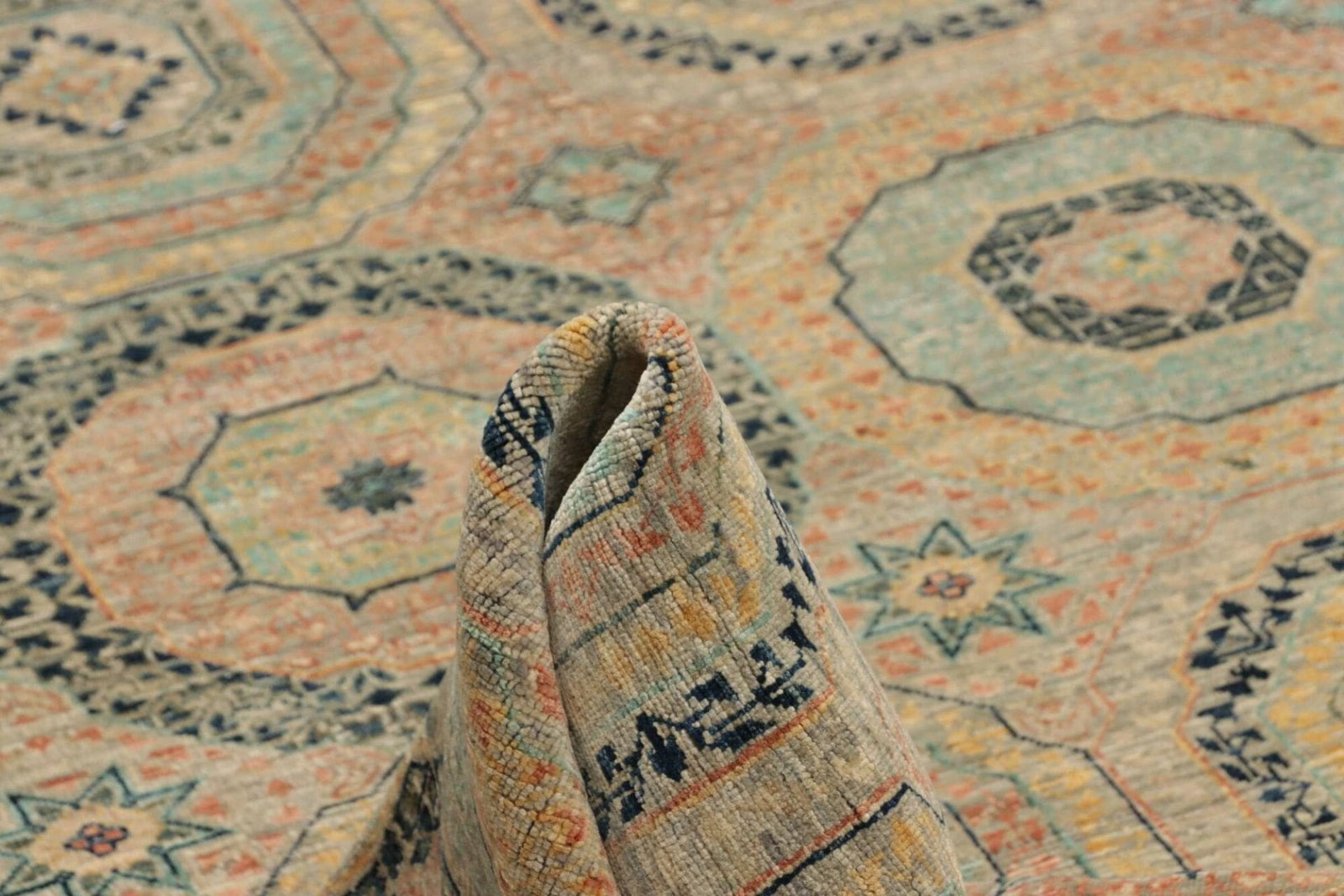 Die Details des Mamluk Orientteppichs sind unvergleichlich. Die hohe Knotendichte sorgt nicht nur für eine außergewöhnliche Langlebigkeit, sondern auch für einen luxuriösen Look und ein fühlbares erhabenes Erlebnis. Im Vergleich zu maschinell hergestellten Teppichen, die oft eine weniger hochwertige Verarbeitung aufweisen, bietet der handgeknüpfte Mamluk Teppich ein einmaliges Produkt, das mit Liebe zum Detail und handwerklichem Geschick gefertigt wurde. Dies macht ihn ideal für anspruchsvolle Käufer, die Wert auf Qualität und Stil legen.