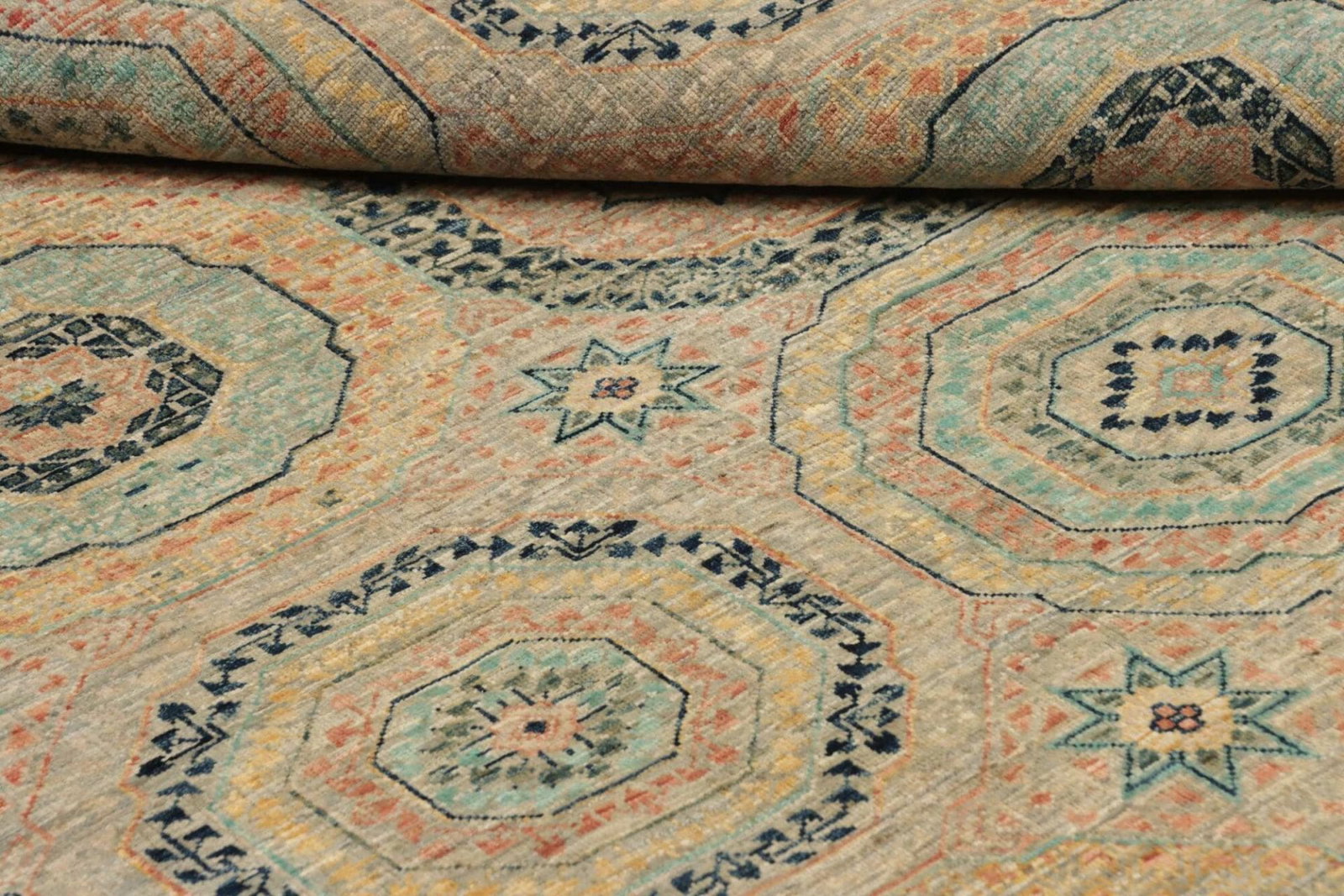 Der Mamluk Orientteppich besteht aus feinster Schurwolle, welche für ihre Langlebigkeit und Widerstandsfähigkeit bekannt ist. Schurwolle ist nicht nur ein nachhaltiges Naturprodukt, sondern bietet zudem ausgezeichneten Komfort; sie ist weich und warm, wodurch der Teppich eine angenehme Wohnatmosphäre schafft. Die handgeknüpfte Technik verleiht dem Teppich eine einzigartige Struktur und sorgt für ein unverwechselbares Gefühl unter den Füßen. Jeder Knoten wird von erfahrenen Handwerkern mit großer Sorgfalt gesetzt, wodurch die hohe Knotendichte in jedem Teppich widerspiegelt wird. Diese traditionelle Technik der Teppichherstellung wird seit Jahrhunderten betrieben und steht für höchste Qualität.