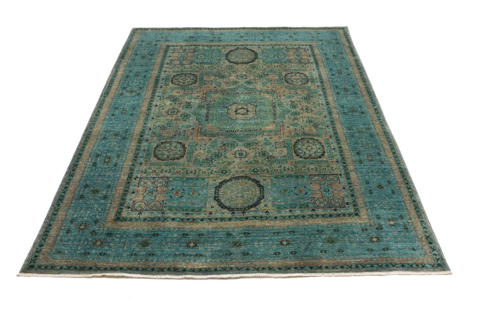 Mamluk Teppich | Knotendichte: ca. 300.000 Knoten/m² | Material: 100% Schurwolle mit Baumwollkette | Größe: 146 x 201 cm | Höhe: ca. 5-7 mm | Herkunft: Handgeknüpft in Pakistan | Provenienz: Mamluk