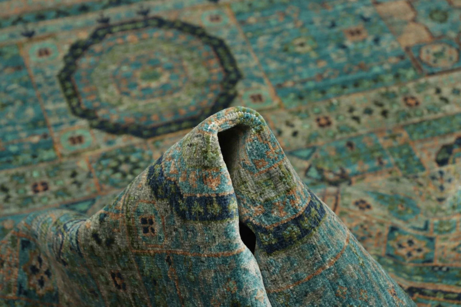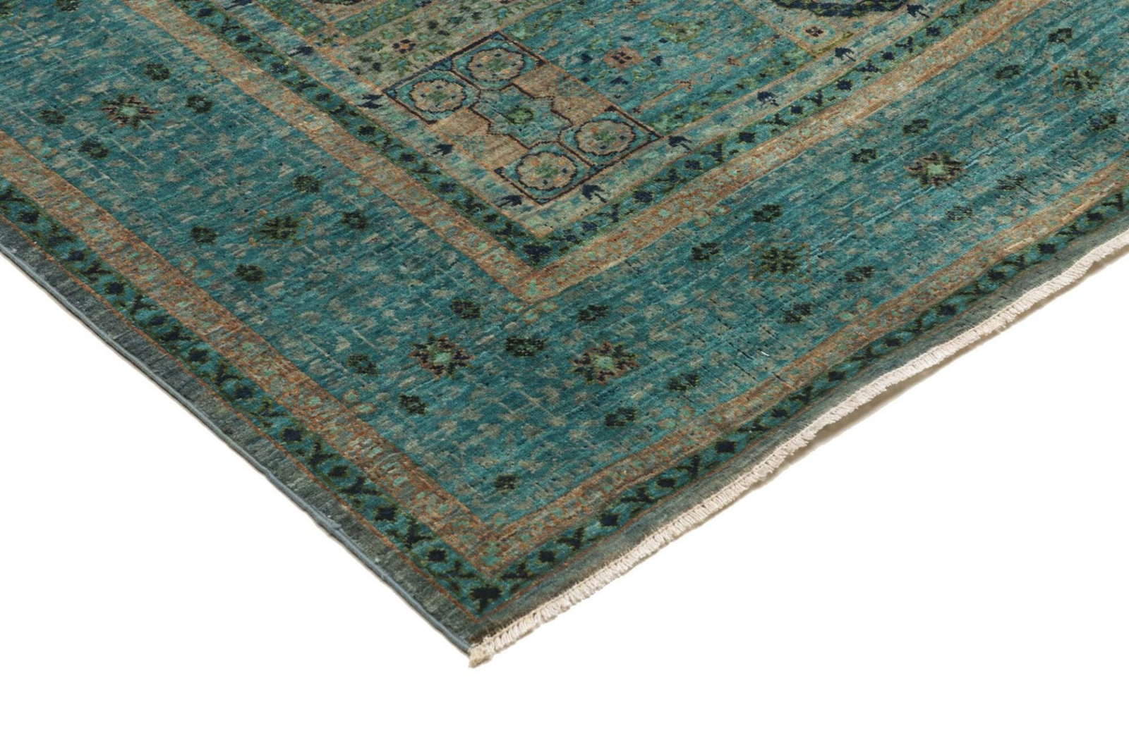 Dieser handgeknüpfte Teppich besteht aus 100% Schurwolle, einem Material, das in der Teppichproduktion für seine Langlebigkeit geschätzt wird. Schurwolle ist nicht nur warm und weich, sondern bietet auch eine hervorragende Wärmeisolierung. Die Knotendichte dieses Mamluk Teppichs ist hoch, was nicht nur seine Strapazierfähigkeit erhöht, sondern auch ein detailliertes Muster ermöglicht, das durch den gekonnten Einsatz von Farben und Formen lebendig wird.