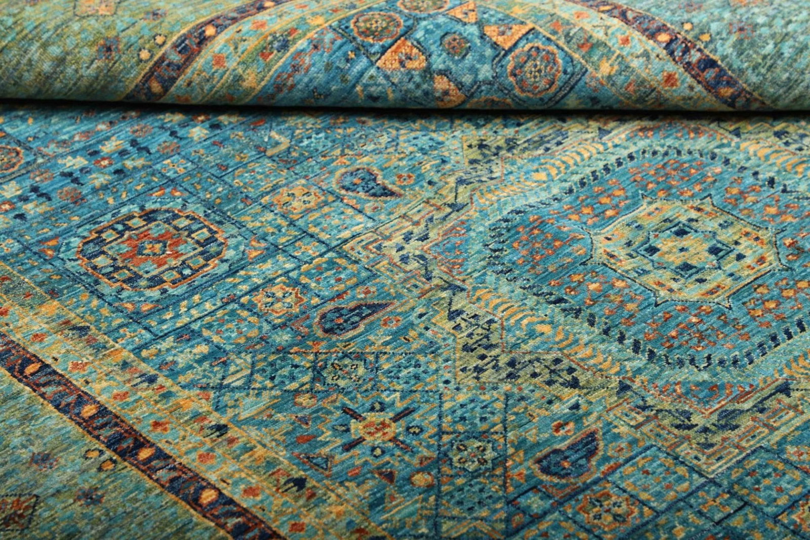 Der Mamluk Orientteppich besticht durch seine hochwertige Verarbeitung und das ansprechende Design. Hergestellt aus reiner Schurwolle, bietet dieser handgeknüpfte Teppich nicht nur ein visuelles Vergnügen, sondern auch einen hohen Tragekomfort. Schurwolle gilt als eines der besten Materialien für die Teppichherstellung, da es robust, langlebig und zugleich weich ist. Der Teppich eignet sich hervorragend für jeden Wohnraum, sei es das Wohnzimmer, das Schlafzimmer oder als stilvolles Highlight in einem Flur.