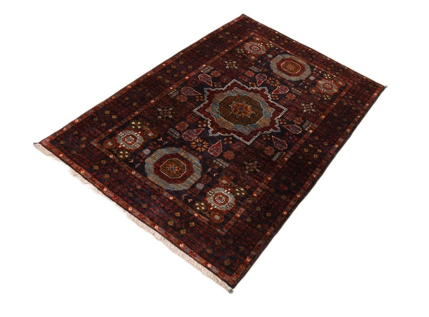 Mamluk-Teppich | Knotendichte: 160.000-200.000 Knoten/m² | Material: Handgesponnene Wolle | Größe: 153×105 cm | Ursprung: Pakistan | Zustand: Neu | Eigenschaften: Schmutzabweisend, wärmeisolierend, weich, langlebig | Verarbeitung: Handgeknüpft | Florhöhe: ca. 8 mm | Gewicht: ca. 6 kg | Farbe: Rot/Orange