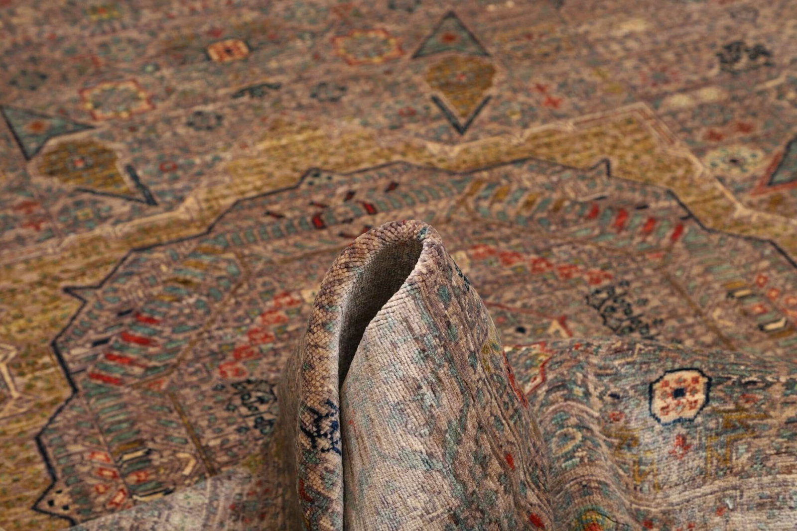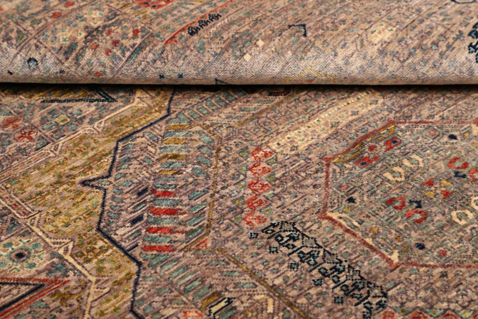 Der Teppich besteht aus hochwertiger Schurwolle, die für ihre Langlebigkeit und Robustheit bekannt ist. Schurwolle ist nicht nur für ihre weiche Textur geschätzt, sondern bietet auch ausgezeichnete Isolations- und Strapazierfähigkeitsmerkmale. Die Handknüpf-Technik garantiert eine hohe Knotendichte, die zur Langlebigkeit und zur Detailgenauigkeit im Design beiträgt. Jeder Knoten wird von erfahrenen Kunsthandwerkern gefertigt, wodurch ein einzigartiges und unverwechselbares Produkt entsteht, das die Handwerkskunst der Teppichknüpfer zur Geltung bringt.