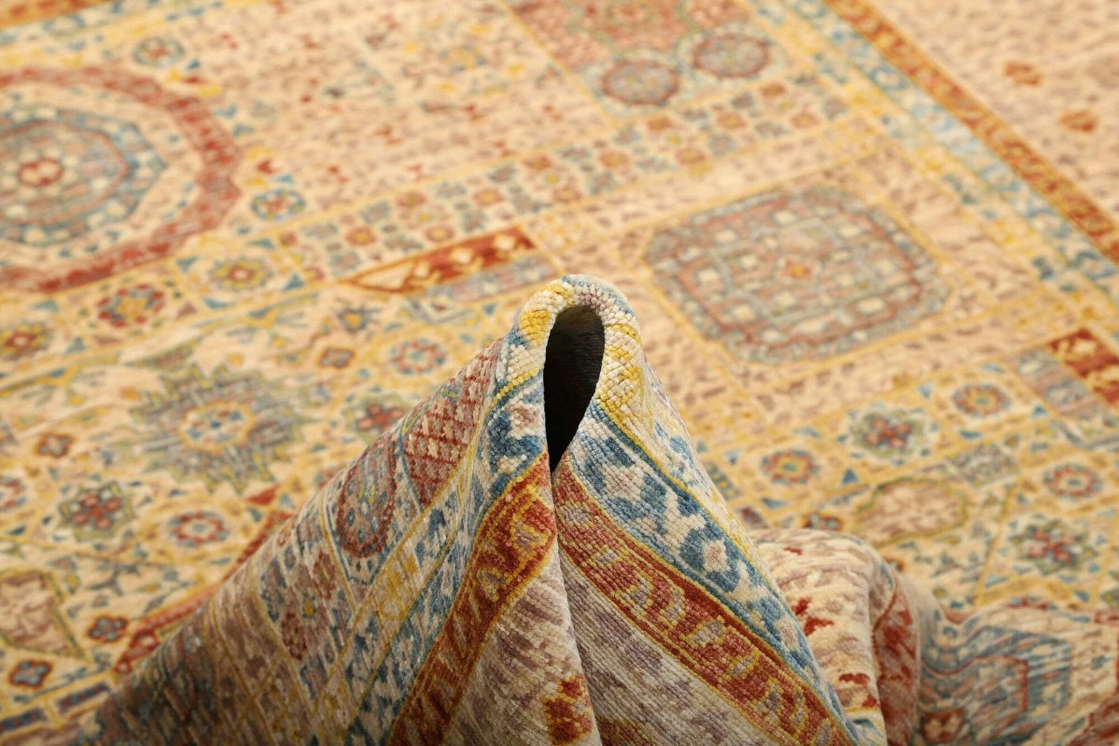 Der Mamluk Orientteppich ist ein exquisit handgeknüpftes Kunstwerk, das nicht nur als Bodenbelag dient, sondern auch als stilvolles Element Ihrer Inneneinrichtung hervorsticht. Dieser Teppich ist aus hochwertiger Schurwolle gefertigt, die für ihre Langlebigkeit und Weichheit bekannt ist. Schurwolle ist ein Material, das nicht nur ein angenehmes Gehgefühl bietet, sondern auch atmungsaktiv und temperaturregulierend ist.