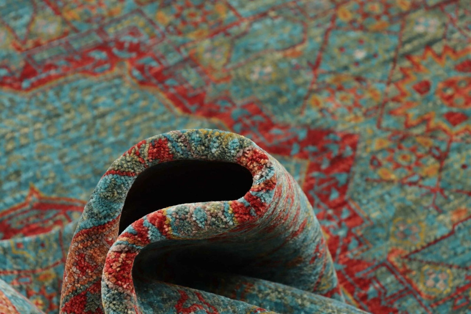Der Mamluk Orientteppich ist aus handverlesener Schurwolle gefertigt, die für ihre Weichheit und Strapazierfähigkeit bekannt ist. Schurwolle ist ein Naturmaterial, das auch in kühlen Räumen für eine angenehme Atmosphäre sorgt und gleichzeitig Temperaturen reguliert. Dieser Teppich ist mit hoher Knotendichte handgeknüpft, was ihm nicht nur eine besondere Dichte und Strapazierfähigkeit verleiht, sondern auch eine Vielzahl von feinen Details in den Mustern ermöglicht. Die Knotentechnik, bei der jeder Knoten individuell von Hand geknotet wird, erfordert viel Geschick und zeigt die Kunstfertigkeit des Teppichknüpfens in ihrer besten Form.