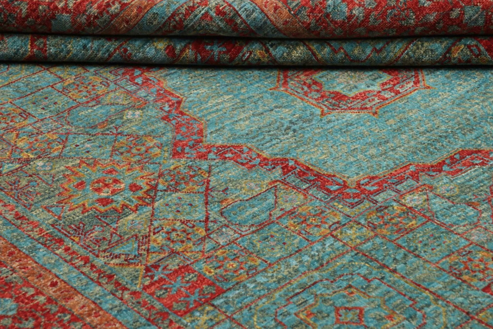 Ein weiteres Merkmal dieses Mamluk Orientteppichs ist die hohe Knotendichte, die ihn nicht nur langlebig macht, sondern auch besonders detailreich. Durch die handknüpfte Technik ist jeder Teppich ein Unikat, das die Handschrift des jeweiligen Knüpfmeisters trägt. Darüber hinaus ist der Teppich äußerst pflegeleicht und kann bei richtiger Handhabung viele Jahre lang Freude bereiten.