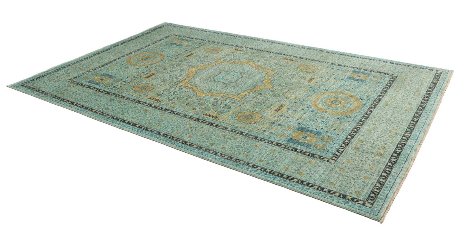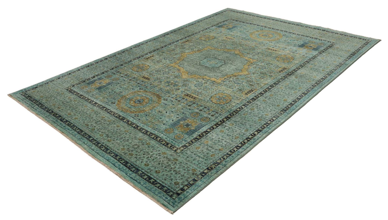 11849$Ursprünglicher Preis war: 11849$8368$Aktueller Preis ist: 8368$Mamluk Teppich | Knotendichte: ca. 300.000 Knoten/m² | Material: 100% Schurwolle (Flor), 100% Baumwolle (Kette) | Größe: 198 x 297 cm | Herkunft: Pakistan | Zustand: Handgeknüpft, hohe Qualität | Charakteristisches Mamluk-Medaillon in der Mitte