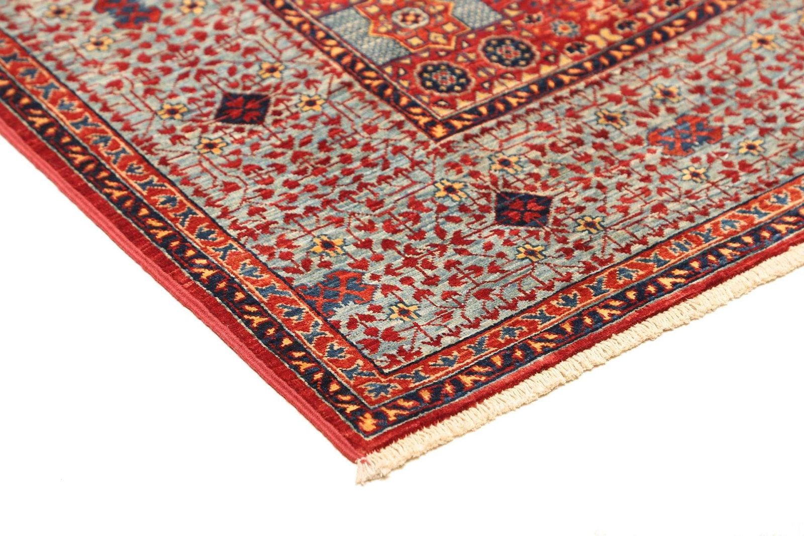 Um die Schönheit und Langlebigkeit Ihres Mamluk Orientteppichs zu bewahren, sollten Sie ihn regelmäßig staubsaugen und bei Bedarf professionell reinigen lassen. Vermeiden Sie direkte Sonneneinstrahlung, um Verblassungen der Farben zu verhindern.