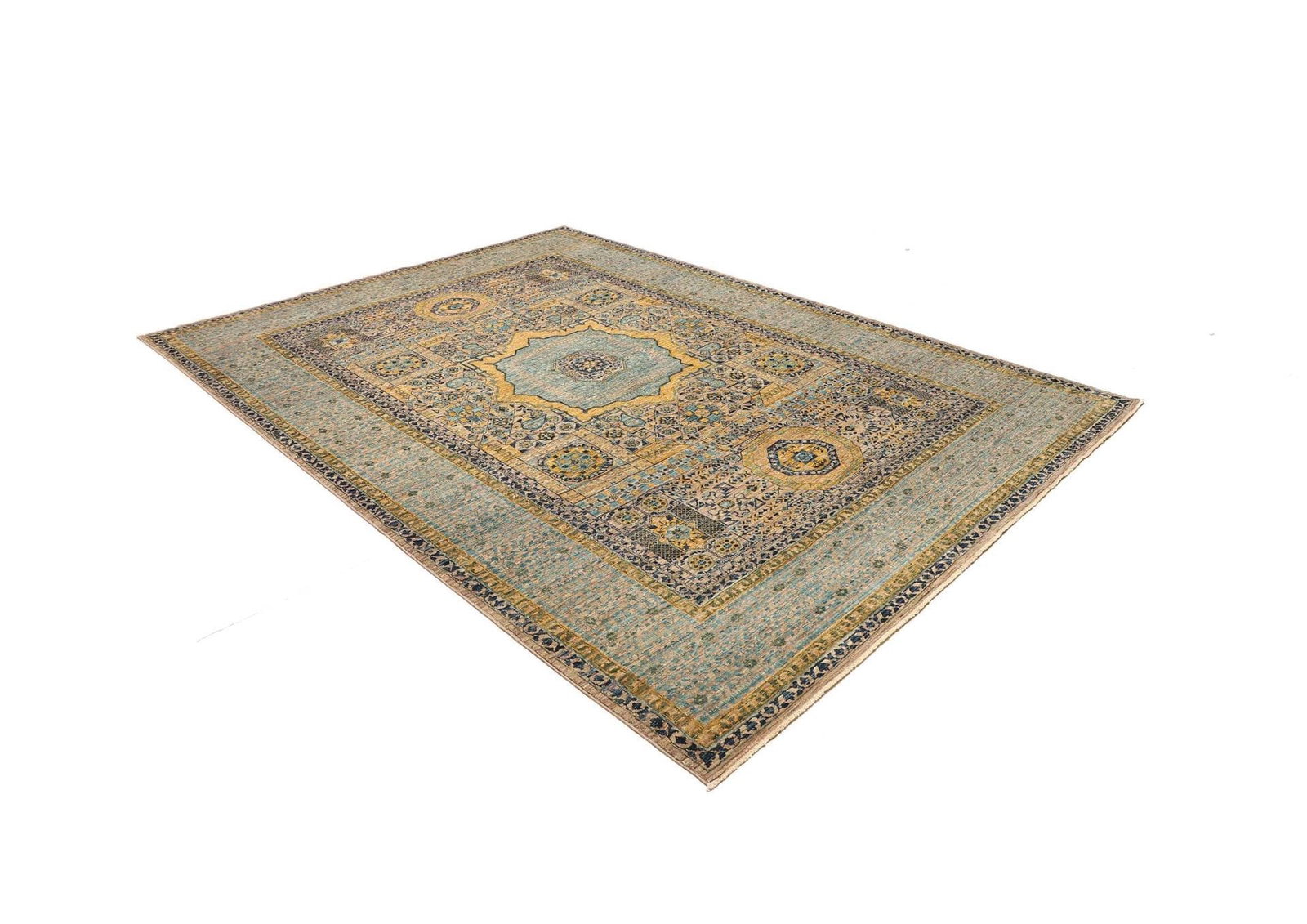 Mamluk Teppich | Knotendichte: ca. 300.000 Knoten/m² | Material: 100% Schurwolle (Flor), 100% Baumwolle (Kette) | Größe: 210 x 279 cm | Zustand: Handgeknüpfte Qualität | Ursprung: Mamluk, Pakistan | Höhe: ca. 5-7 mm