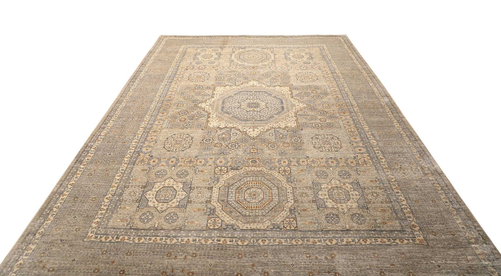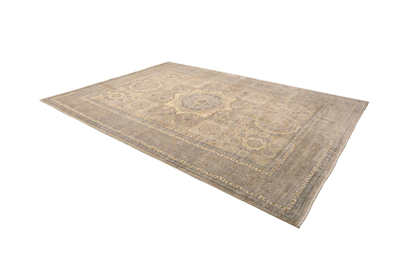 14138$Ursprünglicher Preis war: 14138$12704$Aktueller Preis ist: 12704$Mamluk Teppich | Knotendichte: ca. 300.000 Knoten/m² | Material: 100% Schurwolle (Flor), 100% Baumwolle (Kette) | Größe: 245×345 cm | Handgeknüpfte Qualität | Herkunft: Pakistan | Sehr guter Zustand