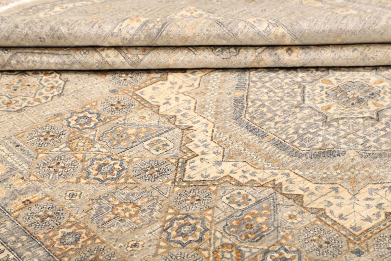 Ein besonderes Merkmal dieses Mamluk Orientteppichs ist sein authentischer handgeknüpfter Charakter. Jedes Stück ist ein Unikat, das die individuelle Handschrift des Teppichknüpfers trägt. Diese handwerkliche Tradition gewährleistet nicht nur Qualität, sondern auch eine tiefere Verbindung zu den kulturellen Wurzeln, aus denen dieser Teppich stammt. Zudem ist die Umsetzung in hochwertiger Seide nicht nur ein Zeichen für Luxus, sondern auch der Beweis für das erstklassige Können der Teppichknüpfer, die diese Fähigkeit über Generationen bewahrt haben. Ein solcher Teppich bringt nicht nur Wärme und stilvolle Eleganz in Ihr Zuhause, sondern erzählt auch von der reichen Geschichte der orientalischen Teppichkunst.