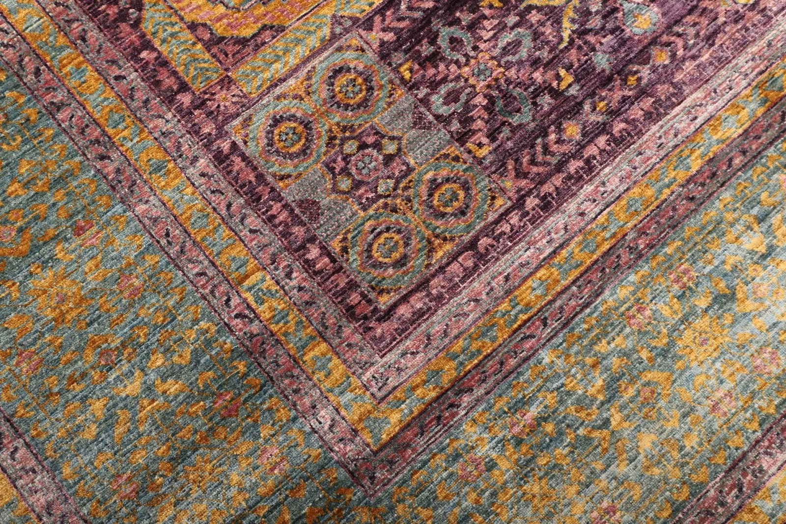 Die Pflege eines handgeknüpften Teppichs wie dieses erfordert keine speziellen chemischen Reinigungsmittel. Regelmäßiges Staubsaugen und gelegentliche professionelle Reinigung halten den Teppich in einem hervorragenden Zustand. Durch die richtigen Pflegepraktiken können Sie die Farben und die Struktur des Teppichs über viele Jahre hinweg bewahren.