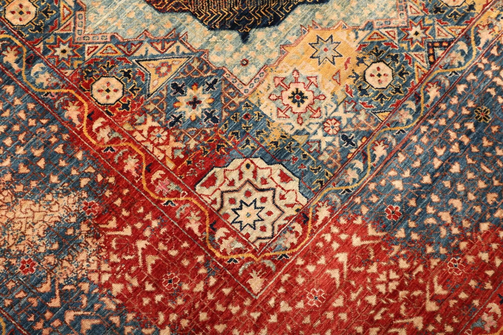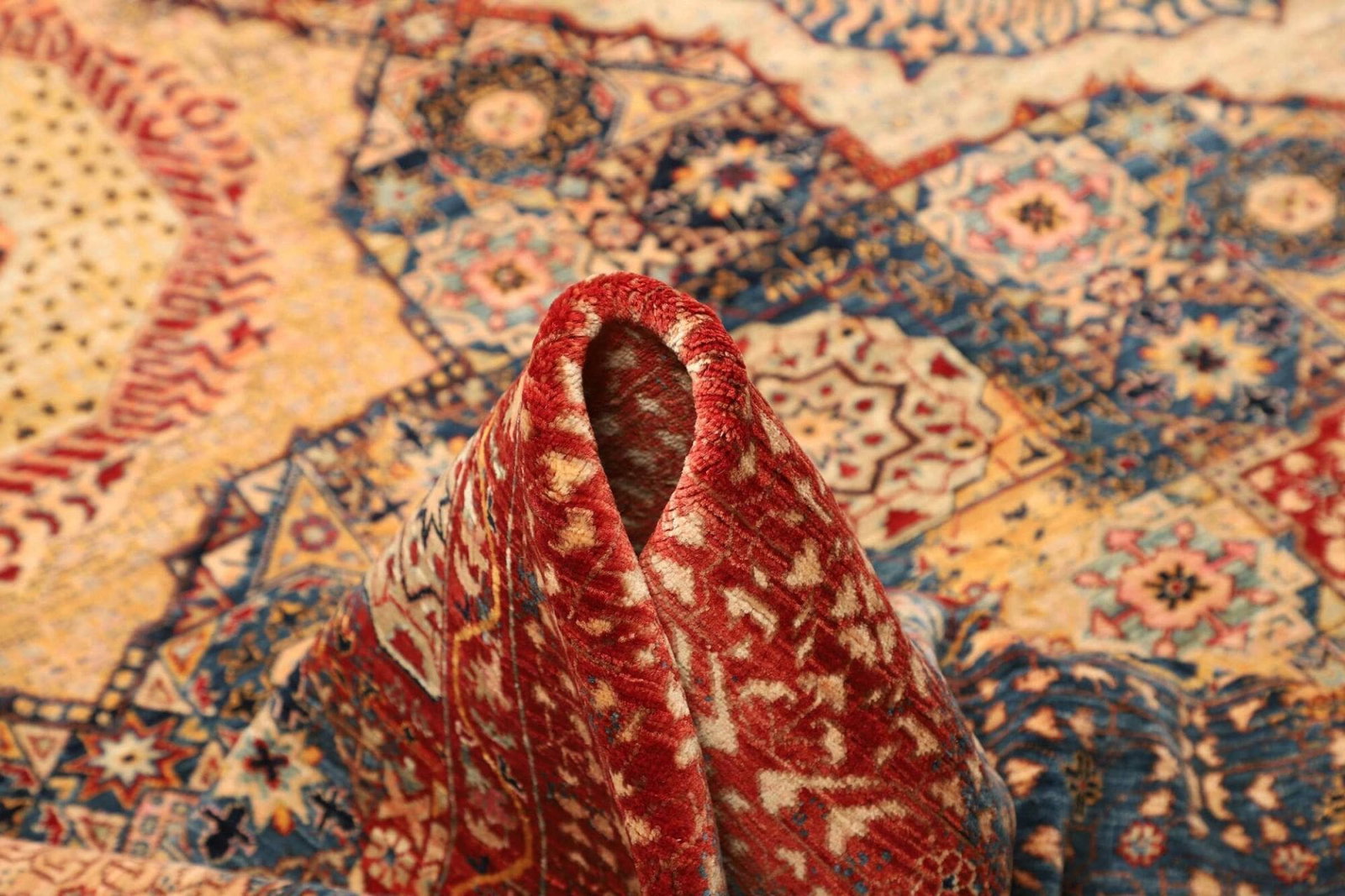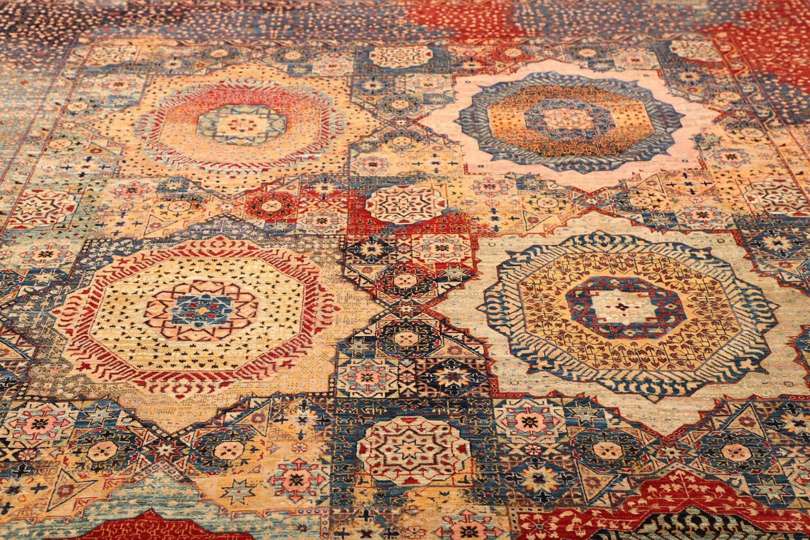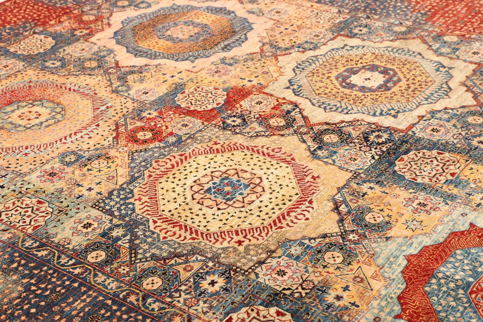 Mit einer Knotendichte, die die Qualität und Kunstfertigkeit des Handwerks unterstreicht, zeugt dieser Teppich von exzellenter Verarbeitung und Liebe zum Detail. Er wurde unter der Verwendung traditioneller Techniken gefertigt, die über Generationen hinweg weitergegeben wurden und noch immer in spezialisierten Werkstätten zum Einsatz kommen. Mamluk-Teppiche sind bekannt für ihre geometrischen Muster und reichen Farben, die von den kulturellen Einflüssen und der künstlerischen Freiheit der Mamluk-Dynastie geprägt sind.